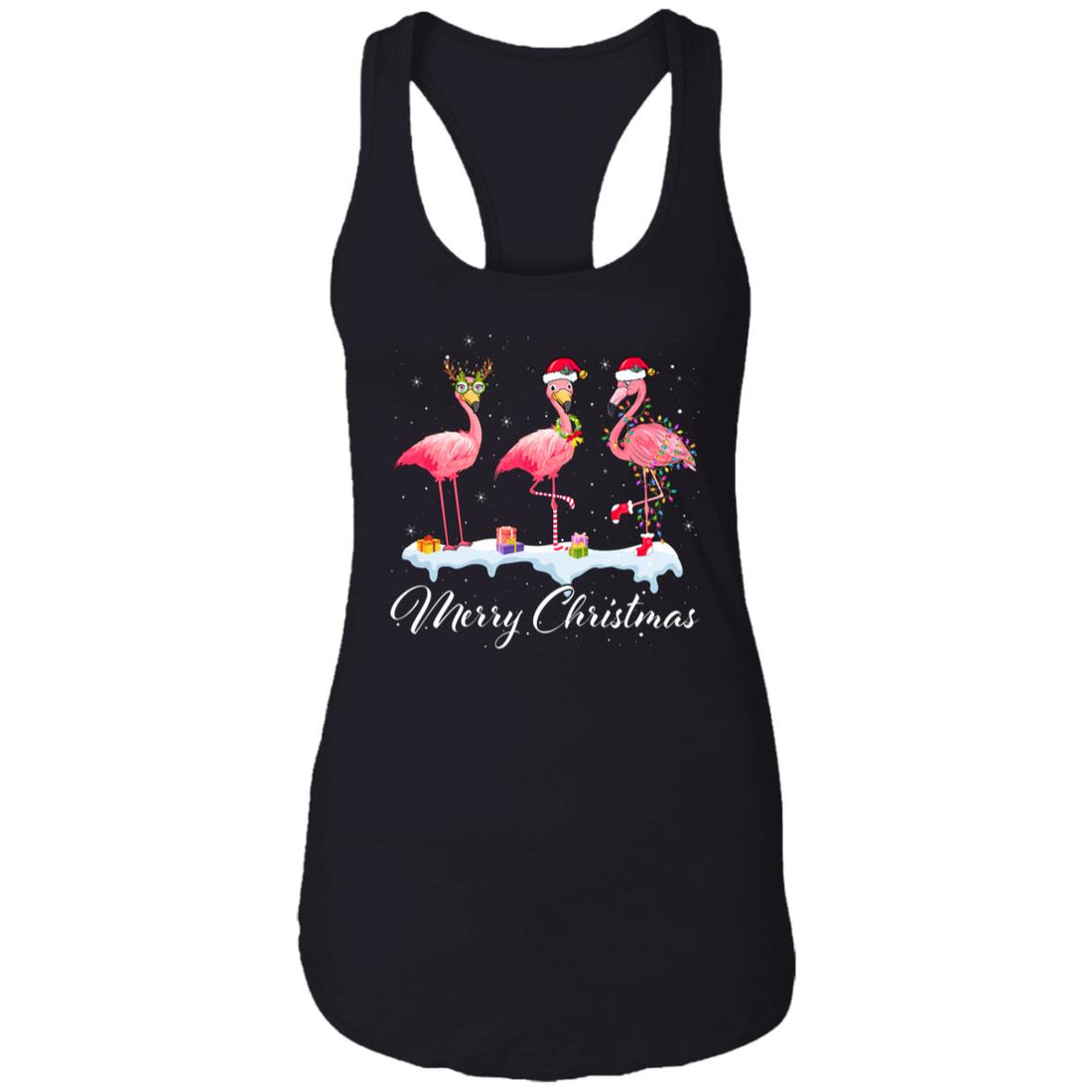 Merry Christmas Hat Santa Flamingo Light Snow Xmas Pajamas Shirt Ladies Ideal Racerback Tank