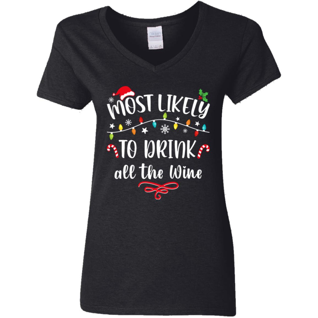 Most Likely To Drink All The Wine Family Matching Christmas T-Shirt Women's V-Neck T-Shirt