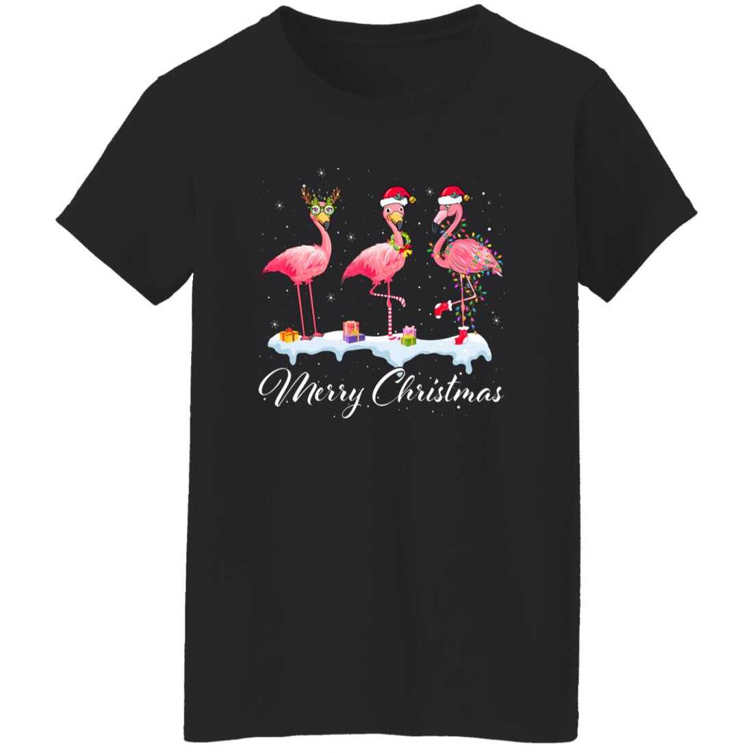 Merry Christmas Hat Santa Flamingo Light Snow Xmas Pajamas Shirt Women's T-Shirt