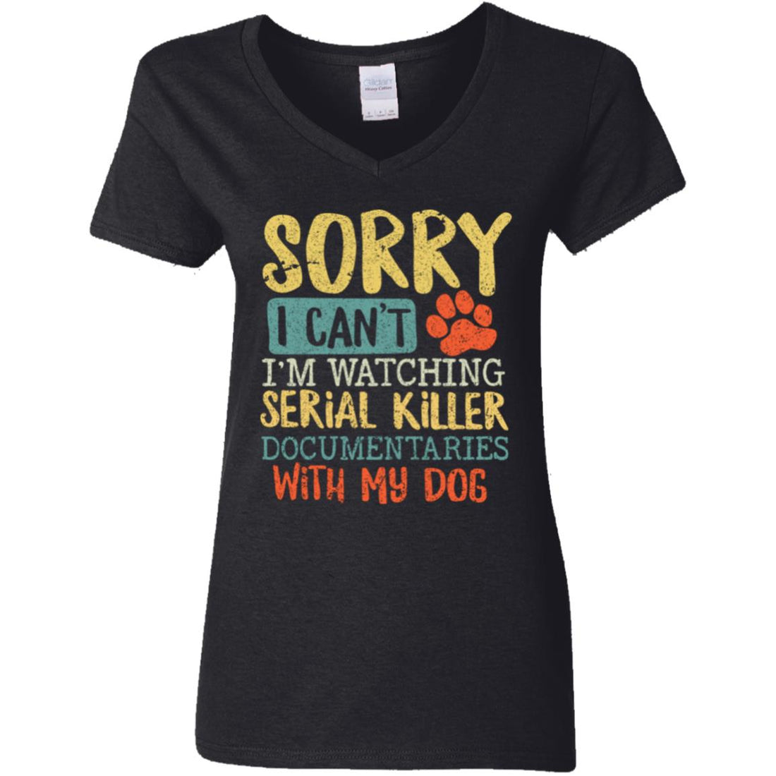 Sorry I Can't I'm Watching Serial Killer Documentaries With My Dog Shirt Women's V-Neck T-Shirt