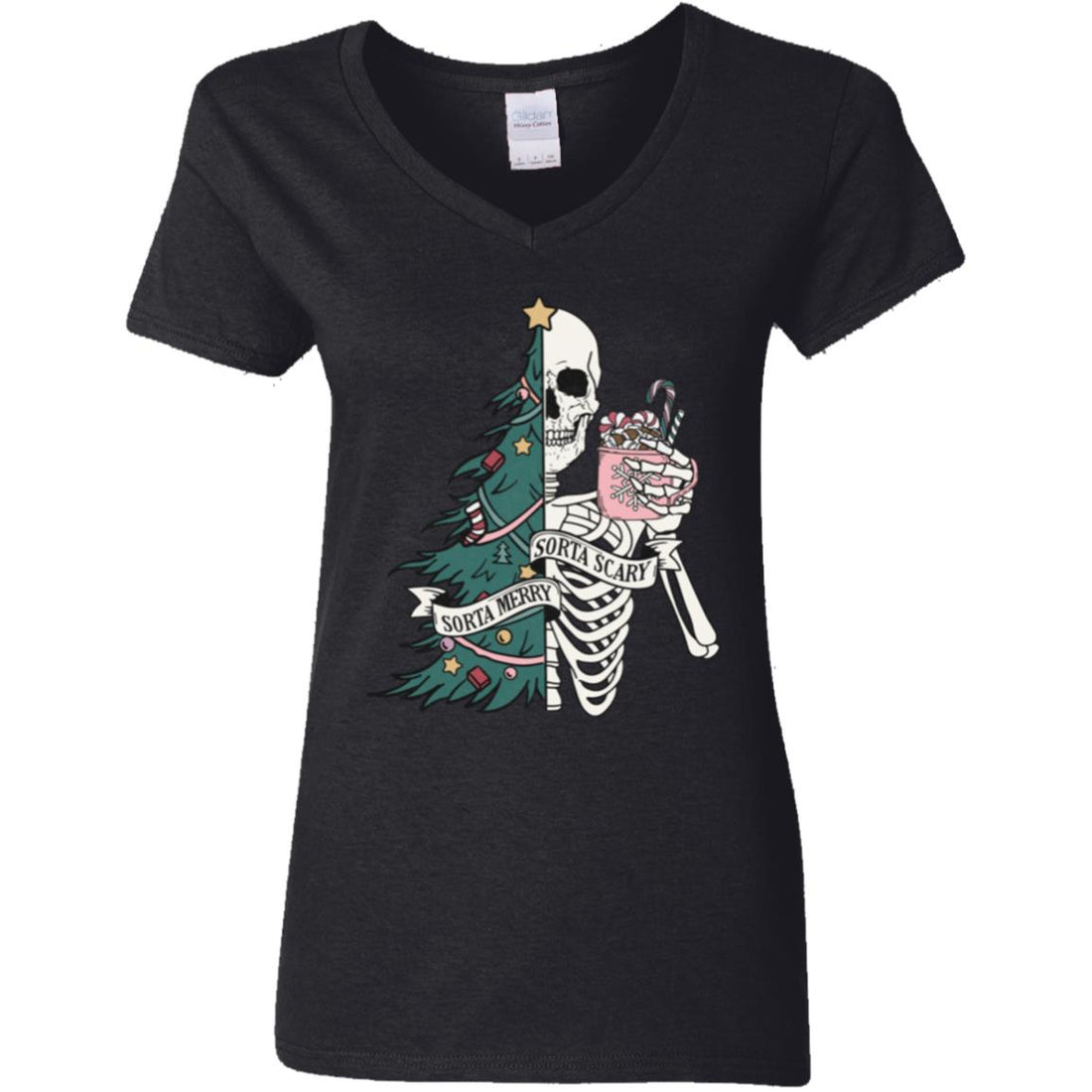Sorta Merry Sorta Scary Tee - Christmas Shirts Women's V-Neck T-Shirt