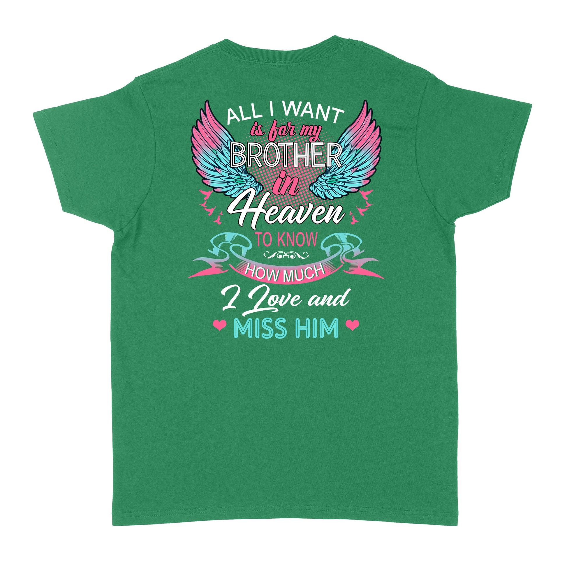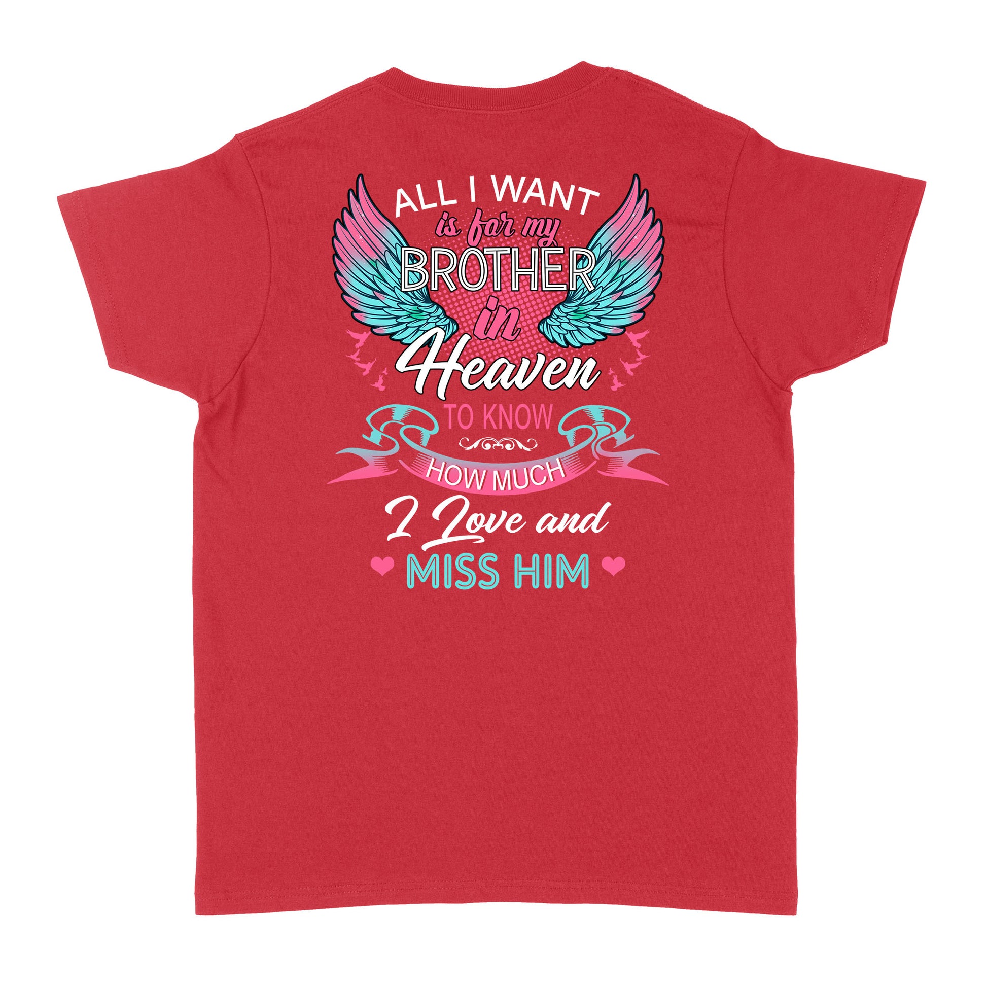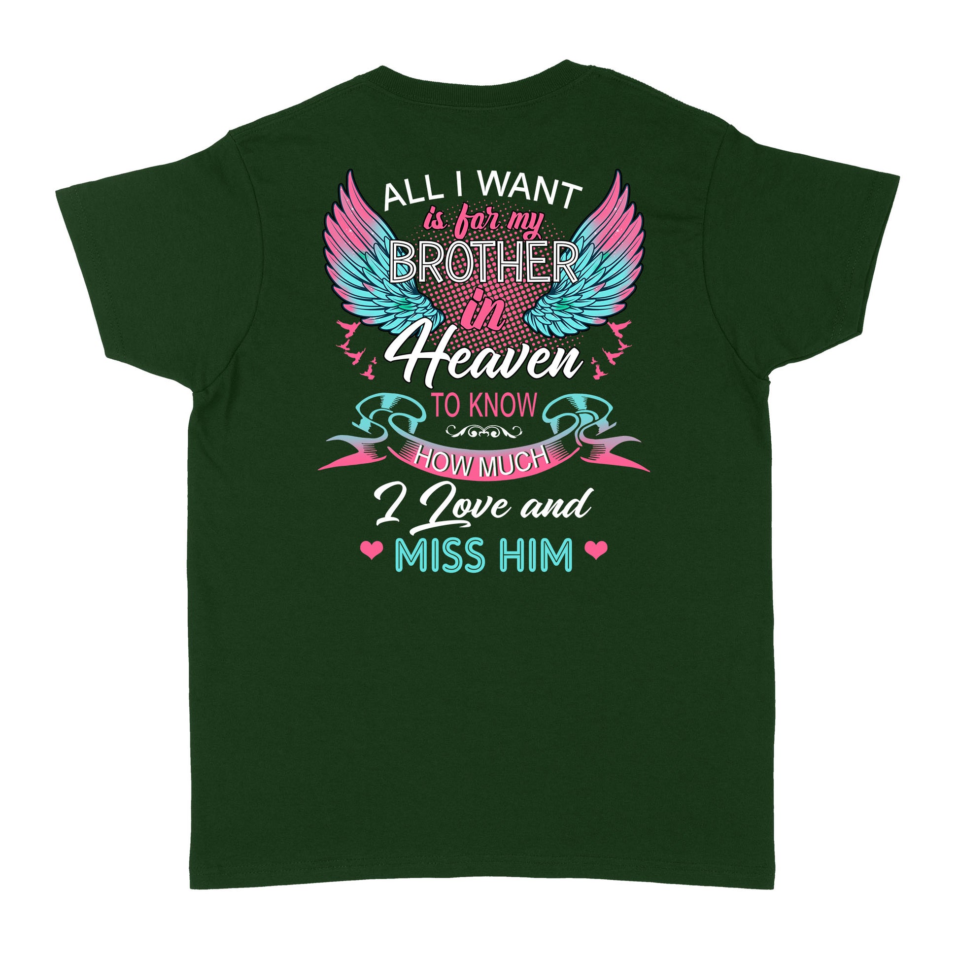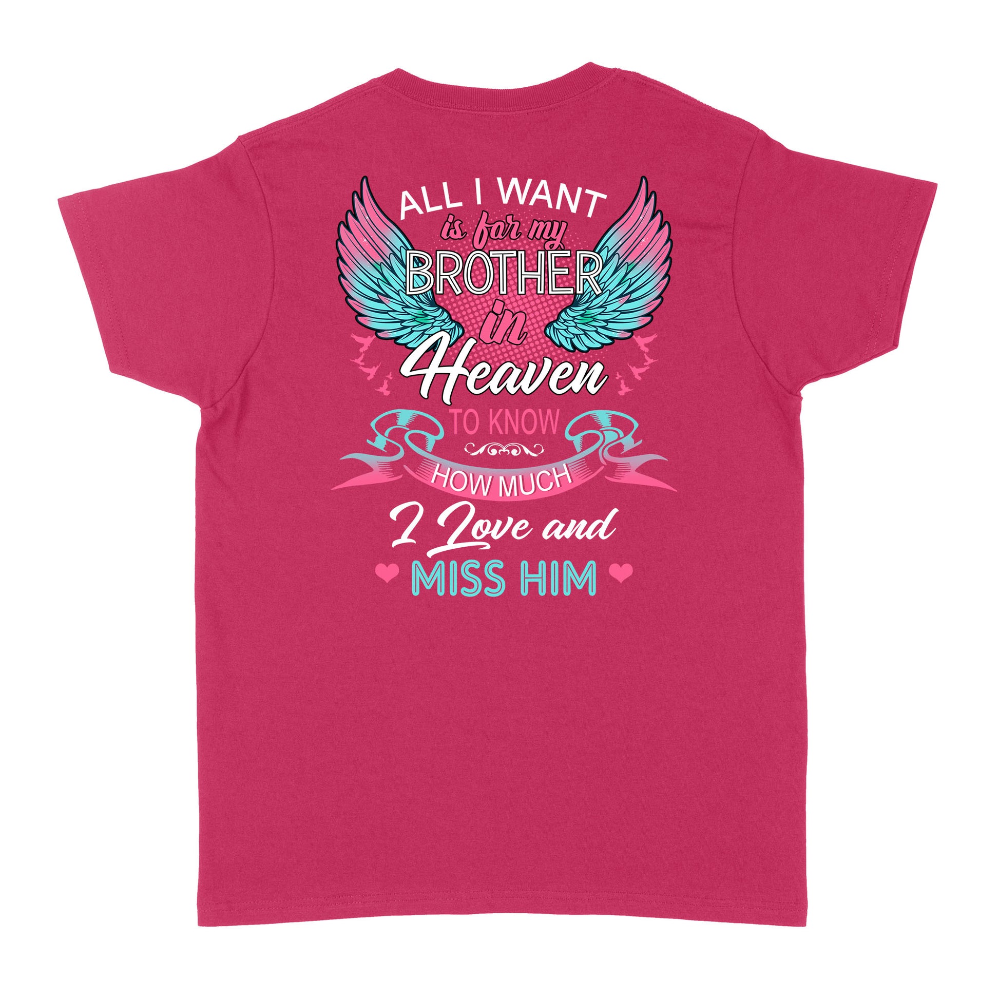 All I Want Is For My Brother In Heaven To Know How Much I Love And Miss Him Print On Back T-Shirt - Standard Women's T-shirt.