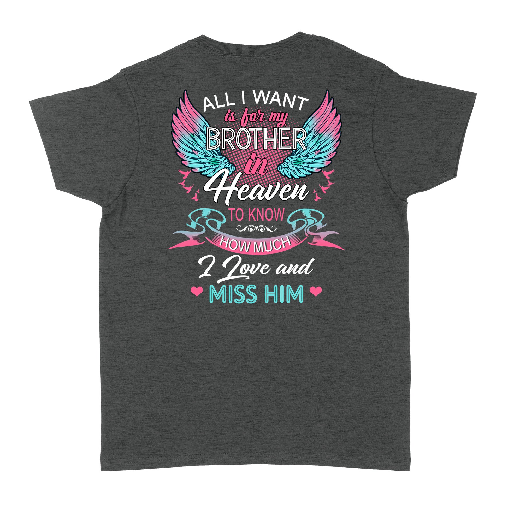 All I Want Is For My Brother In Heaven To Know How Much I Love And Miss Him Print On Back T-Shirt - Standard Women's T-shirt
