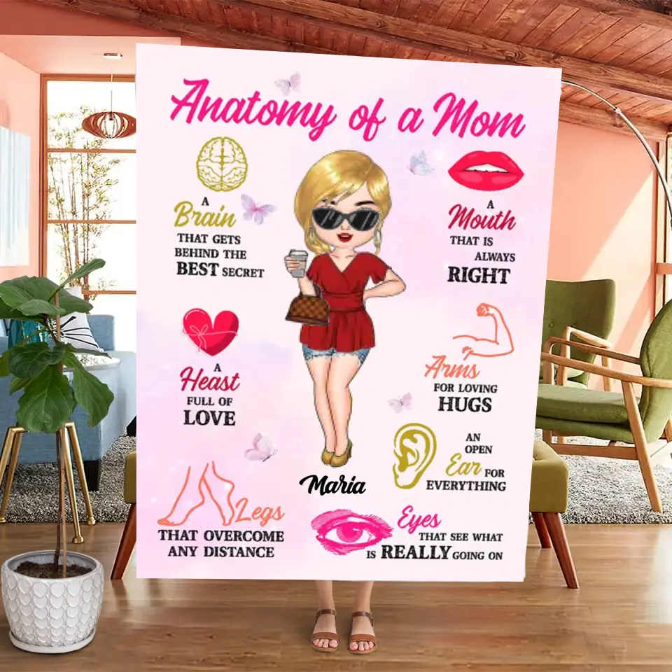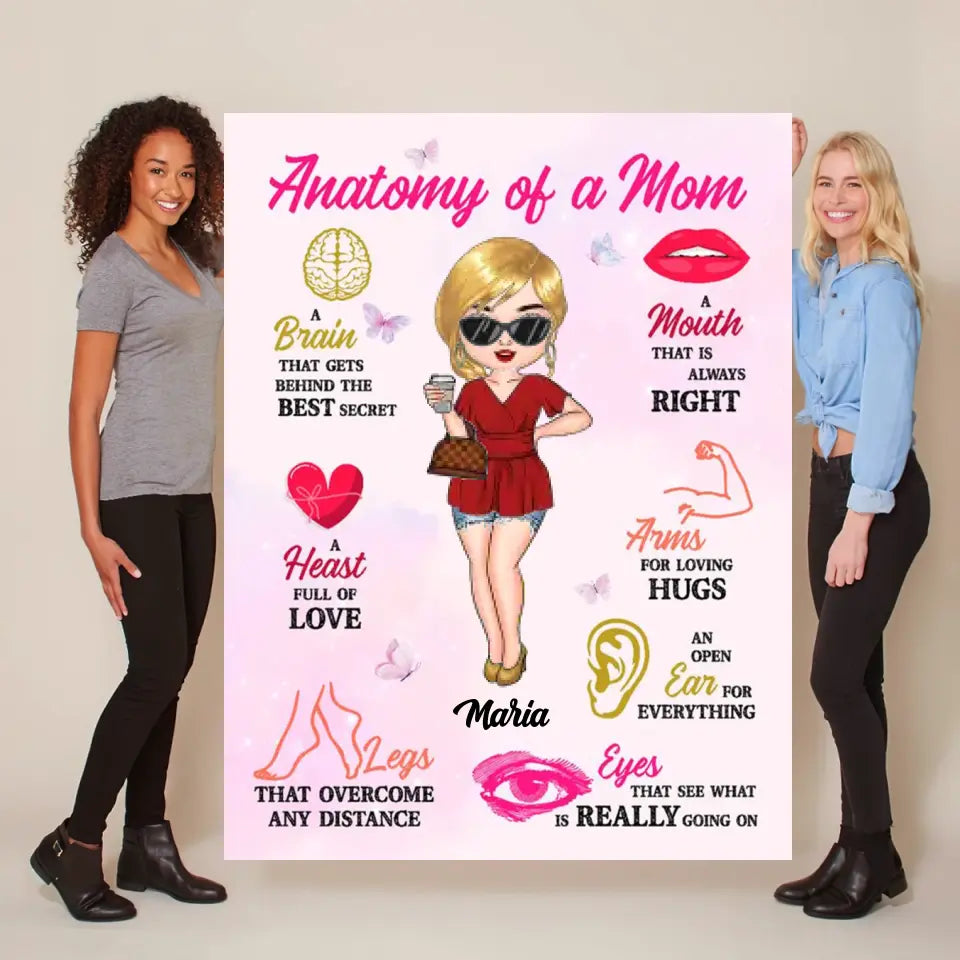 Anatomy Of Mom Personalized Blanket Best Gift For Mom, Grandma, Mother's Day Gift Ideal