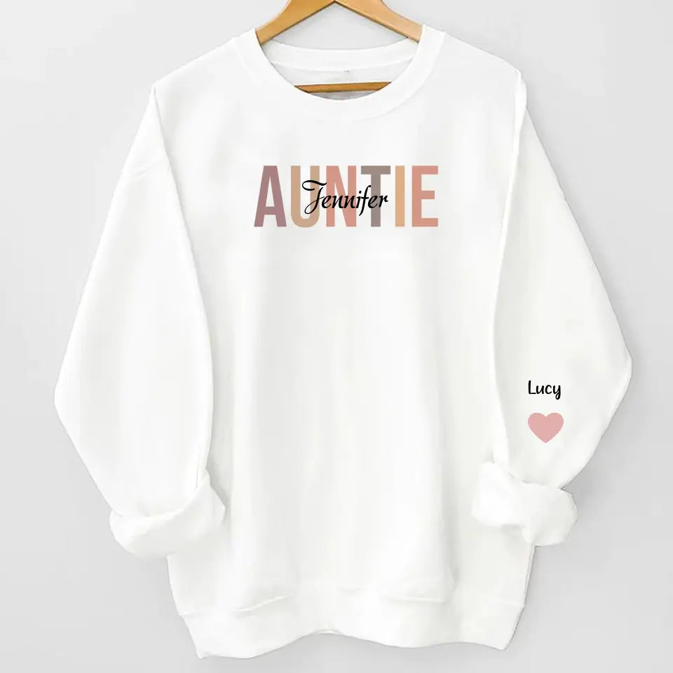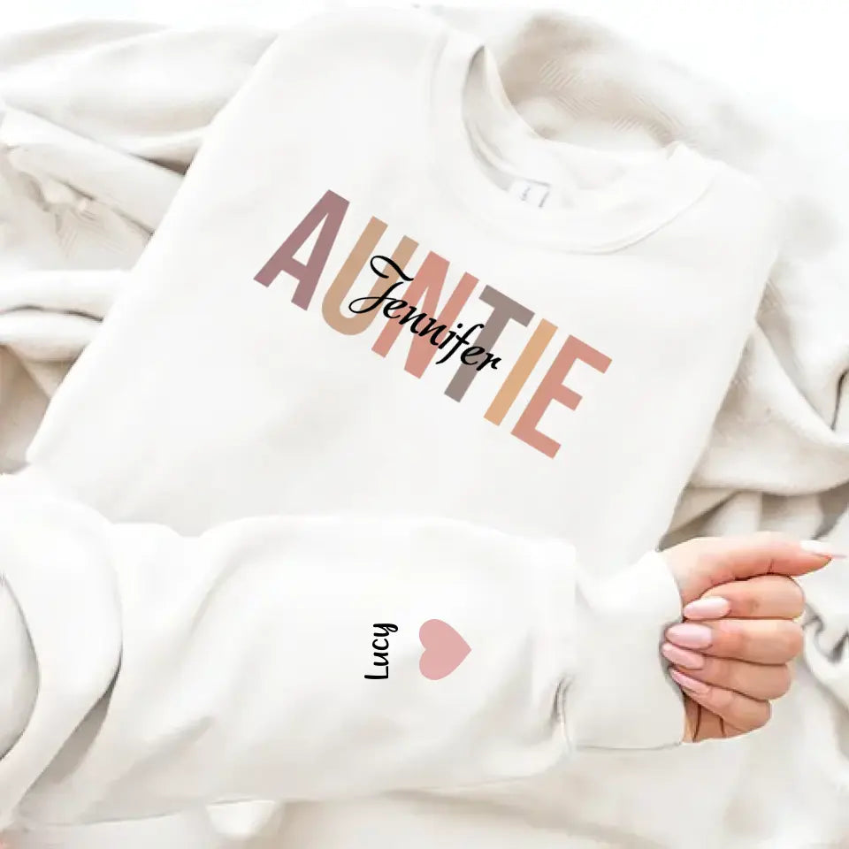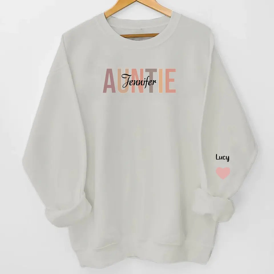 Auntie With Kid Names Personalized Sleeve Print Sweatshir Mothers Day Gift