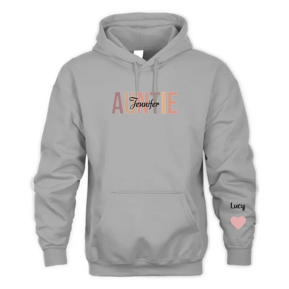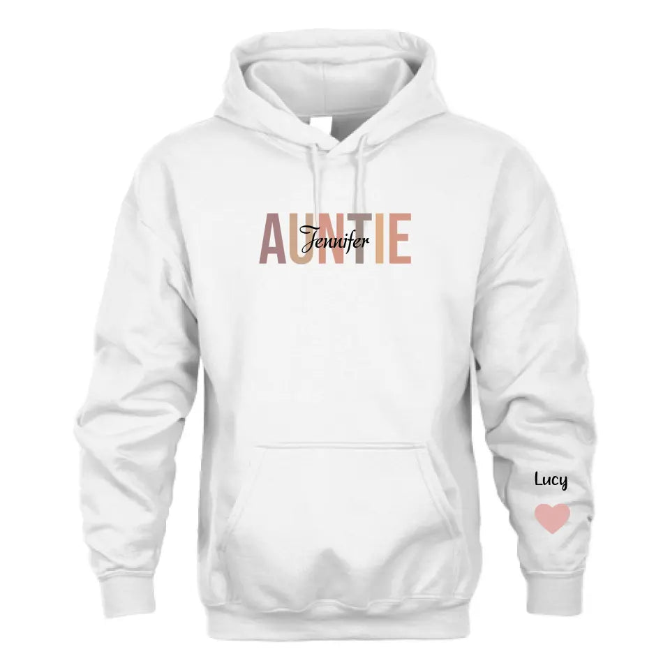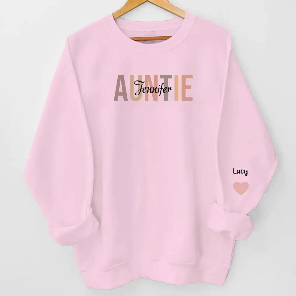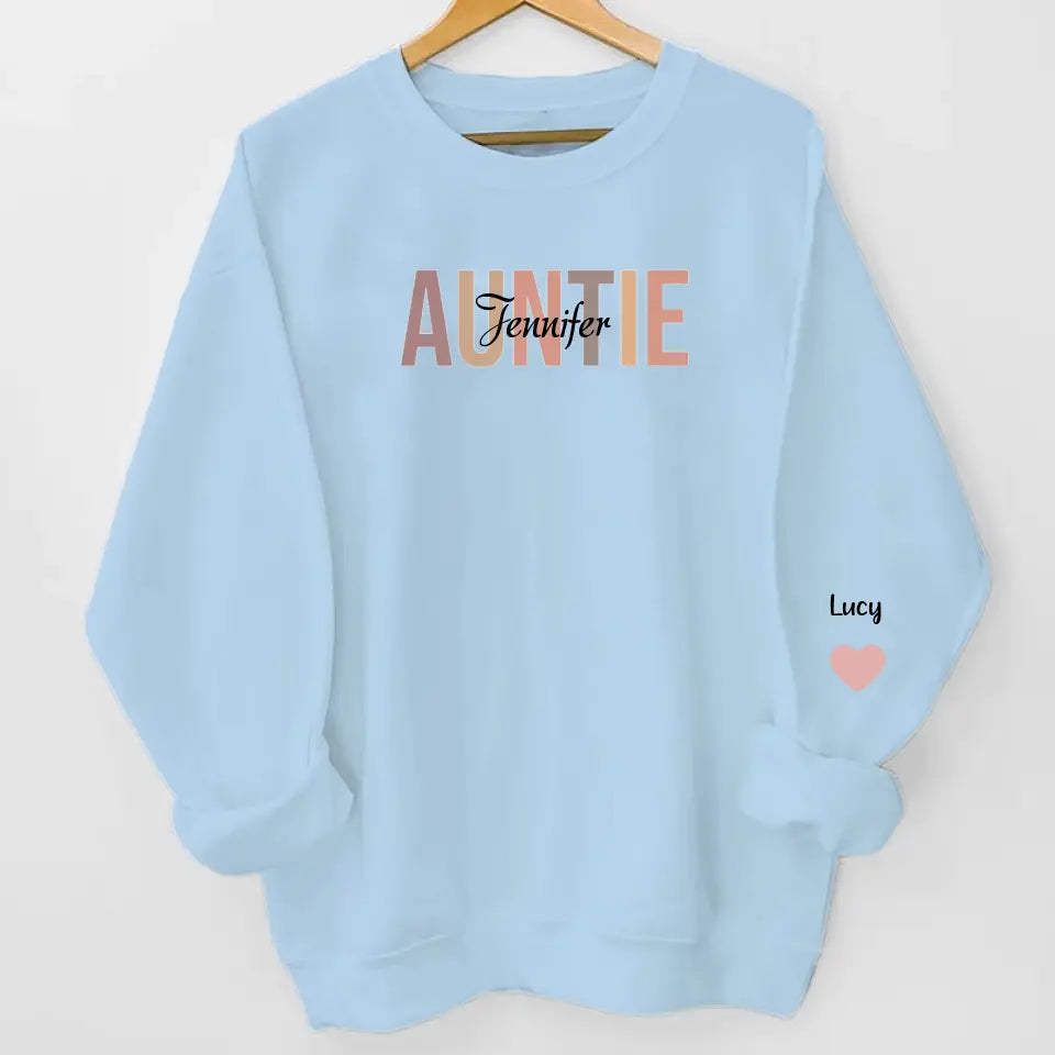 Auntie With Kid Names Personalized Sleeve Print Sweatshir Mothers Day Gift