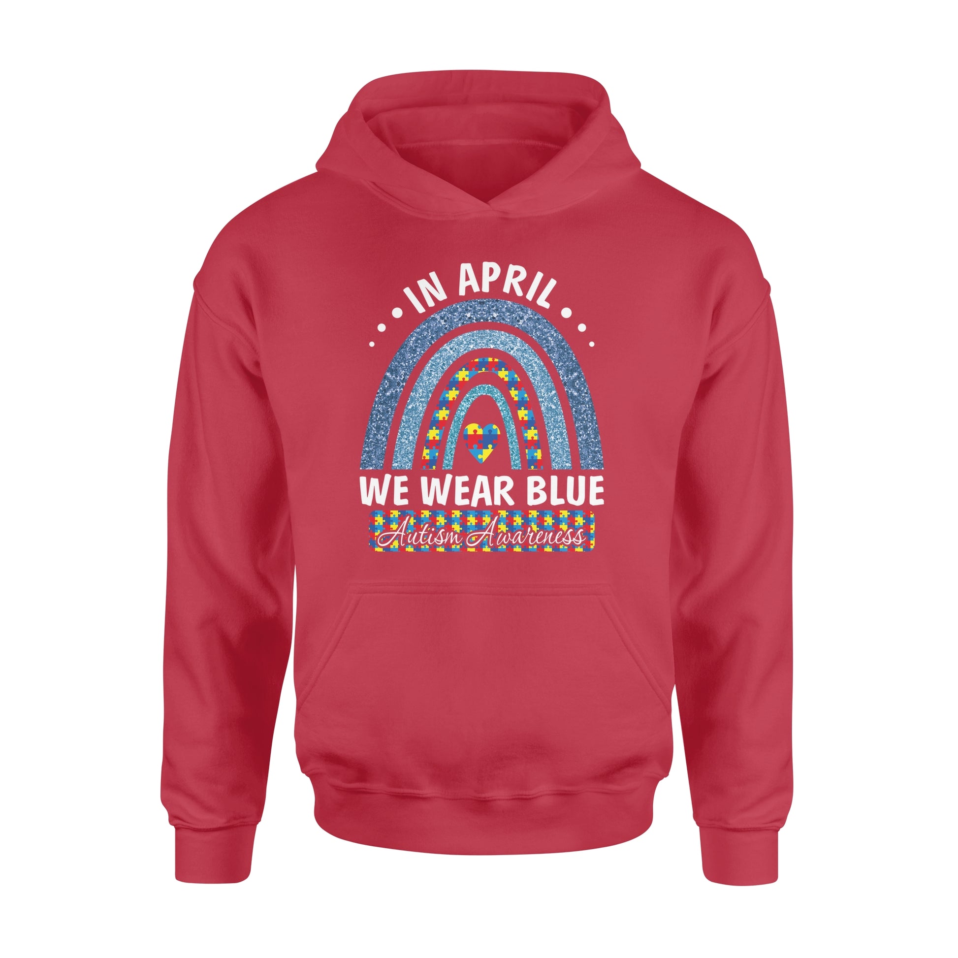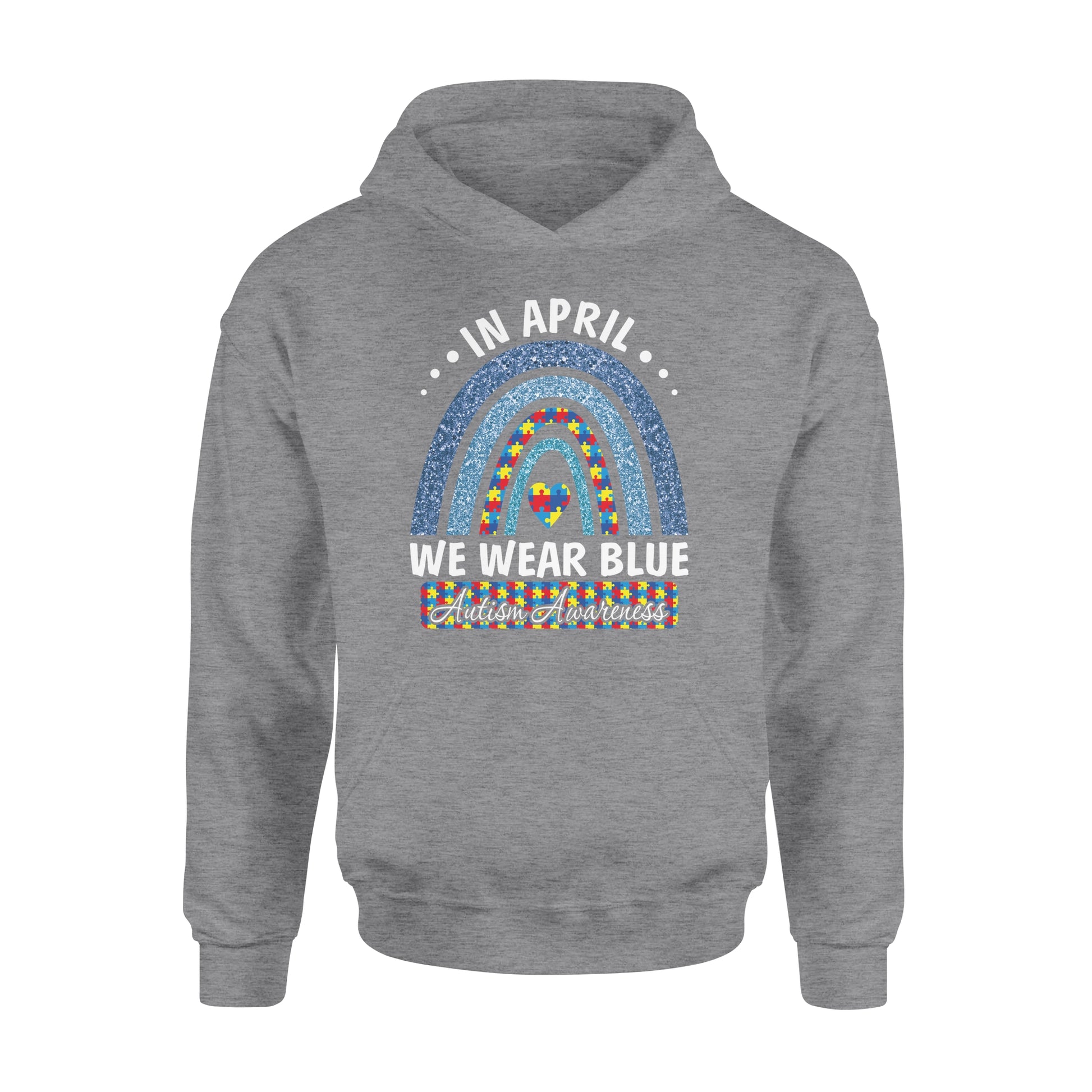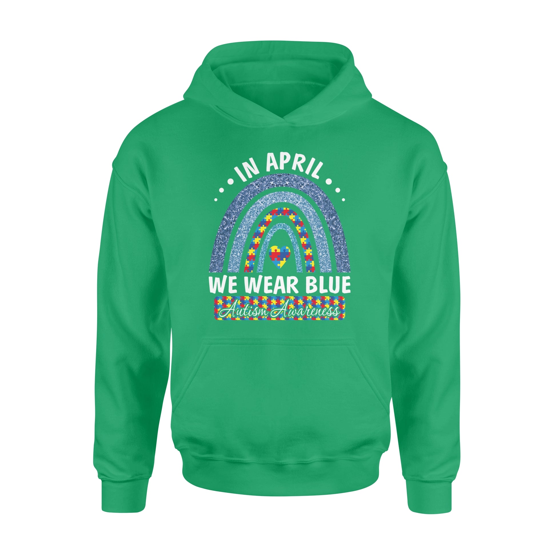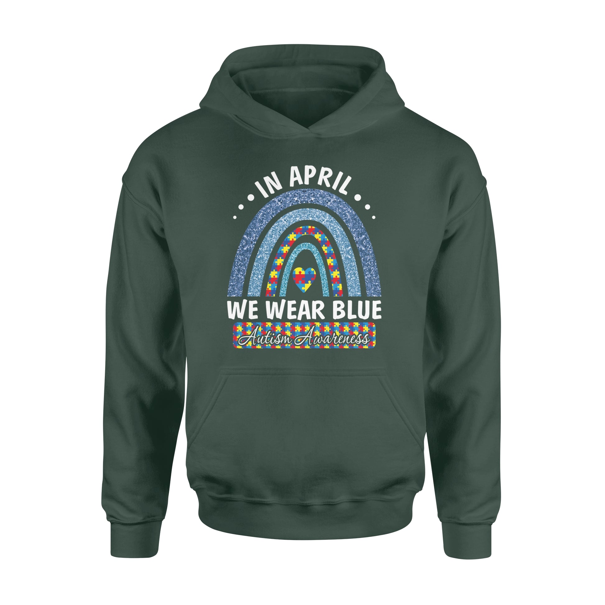 Autism Rainbow In April We Wear Tees Blue Autism Awareness Shirt - Standard Hoodie