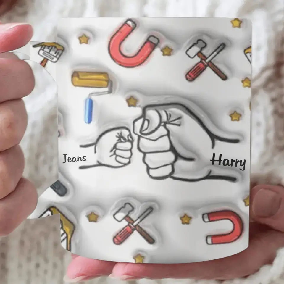 Baby and Dad Fist Bump, Personalized 3D Inflated Effect Printed Mug, Father Day Gift For Dad, Grandpa. This mug is the perfect gift for dad, father, or grandpa, with a unique design that will warm their heart every time they use it. Give them something special with this heartfelt and personalized gift.