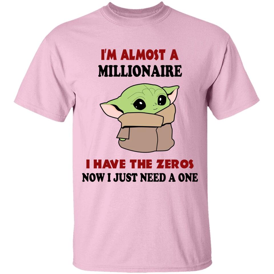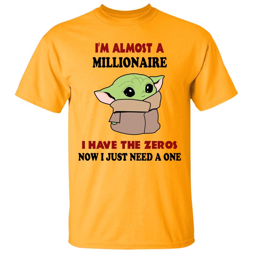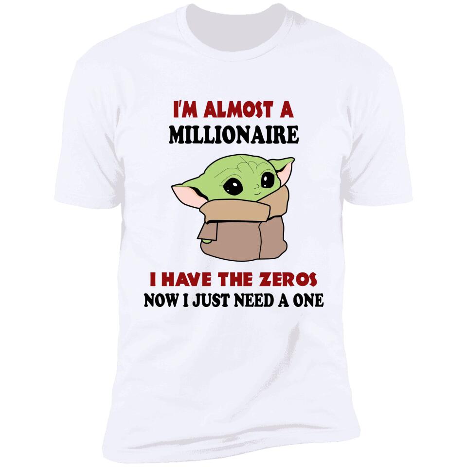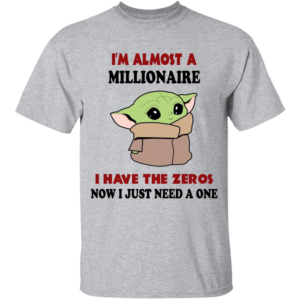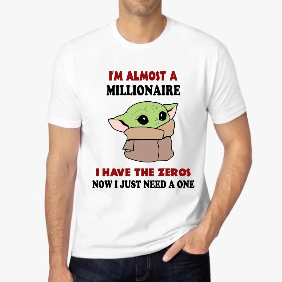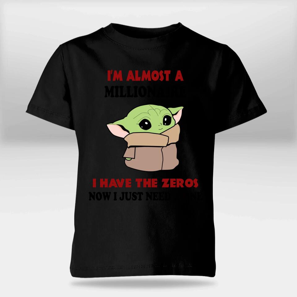 Baby Yoda I'm Almost A Millionaire I Have All The Zeros Now I Just Need A One T-shirt. Perfect gift idea for Birthday, Party, Vacation or Any Occasion, Holidays, Halloween, Christmas…Designed, printed, and shipped from the United States.