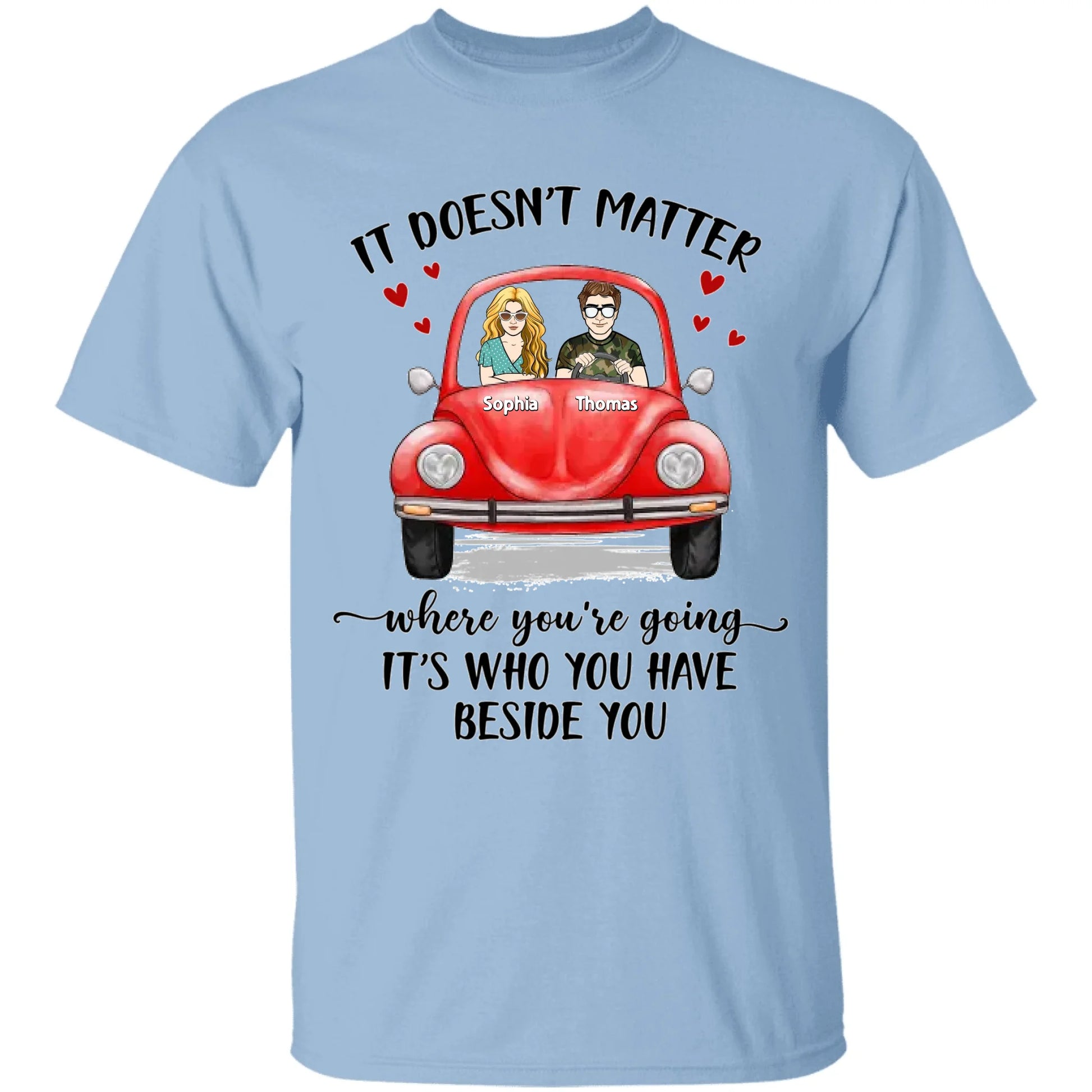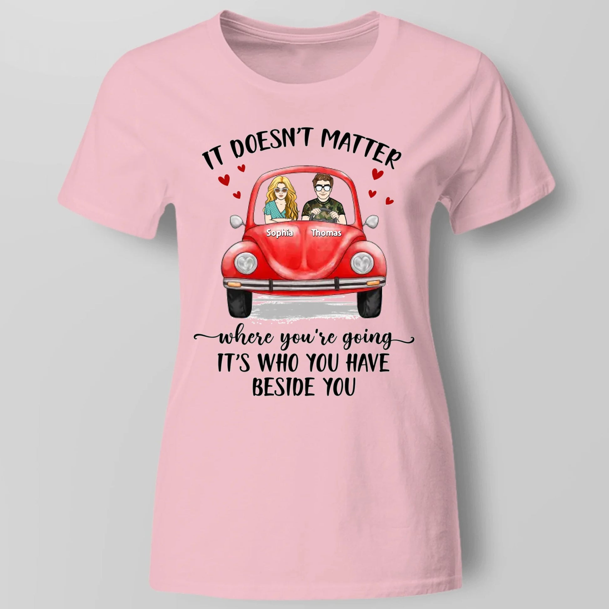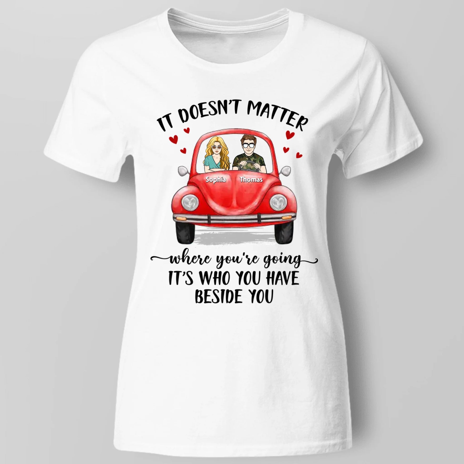 Celebrate your love story with this charming personalized couple shirt featuring a vintage Volkswagen Beetle design. Each tee is customized with your names, creating a one-of-a-kind keepsake that captures your unique bond. The classic car imagery adds nostalgic appeal and timeless style, making it an ideal gift for anniversaries, engagements, or simply showing off your partnership. Crafted for comfort and durability, this shirt works perfectly for casual outings, date nights, or matching couple moments. A thoughtful way to wear your connection with pride.