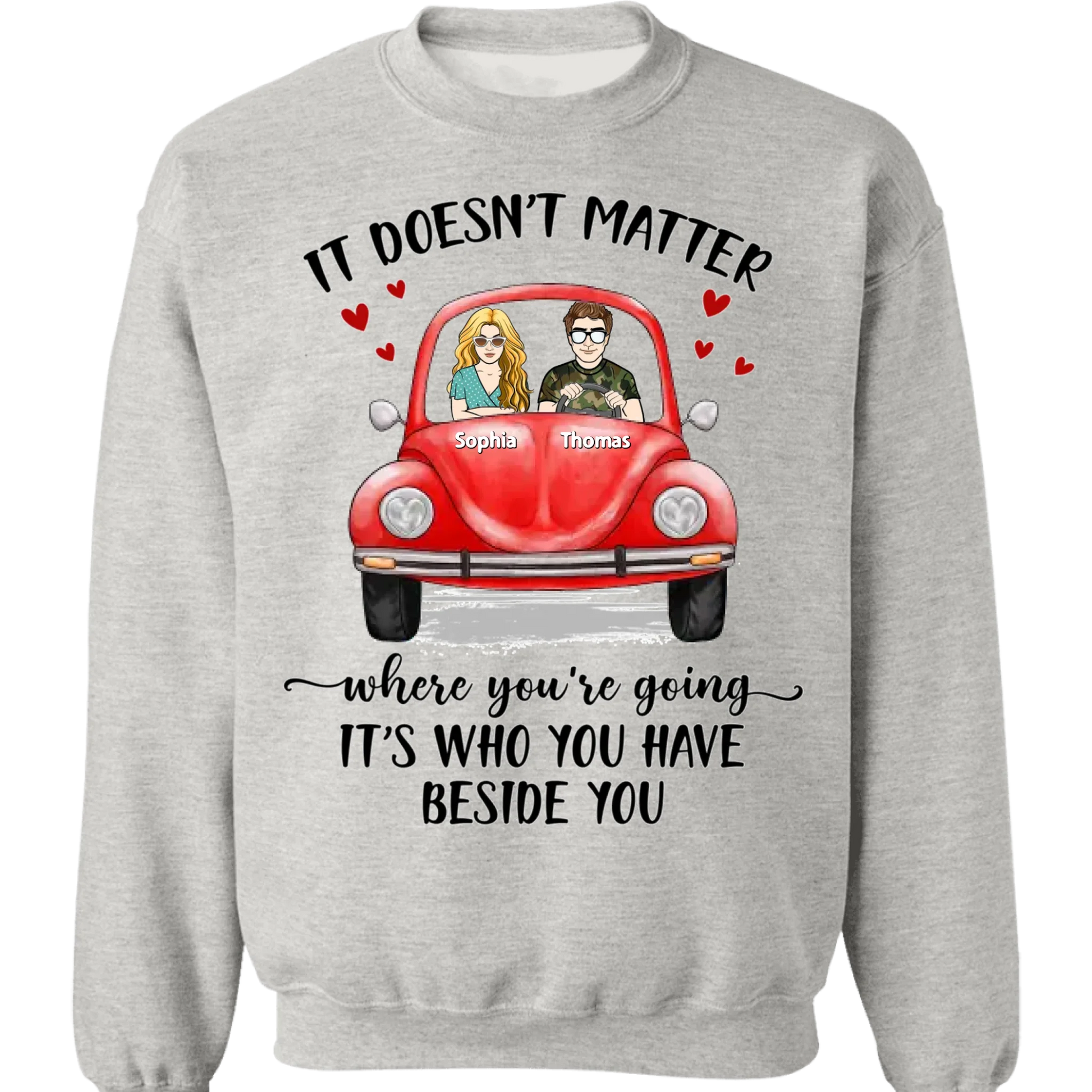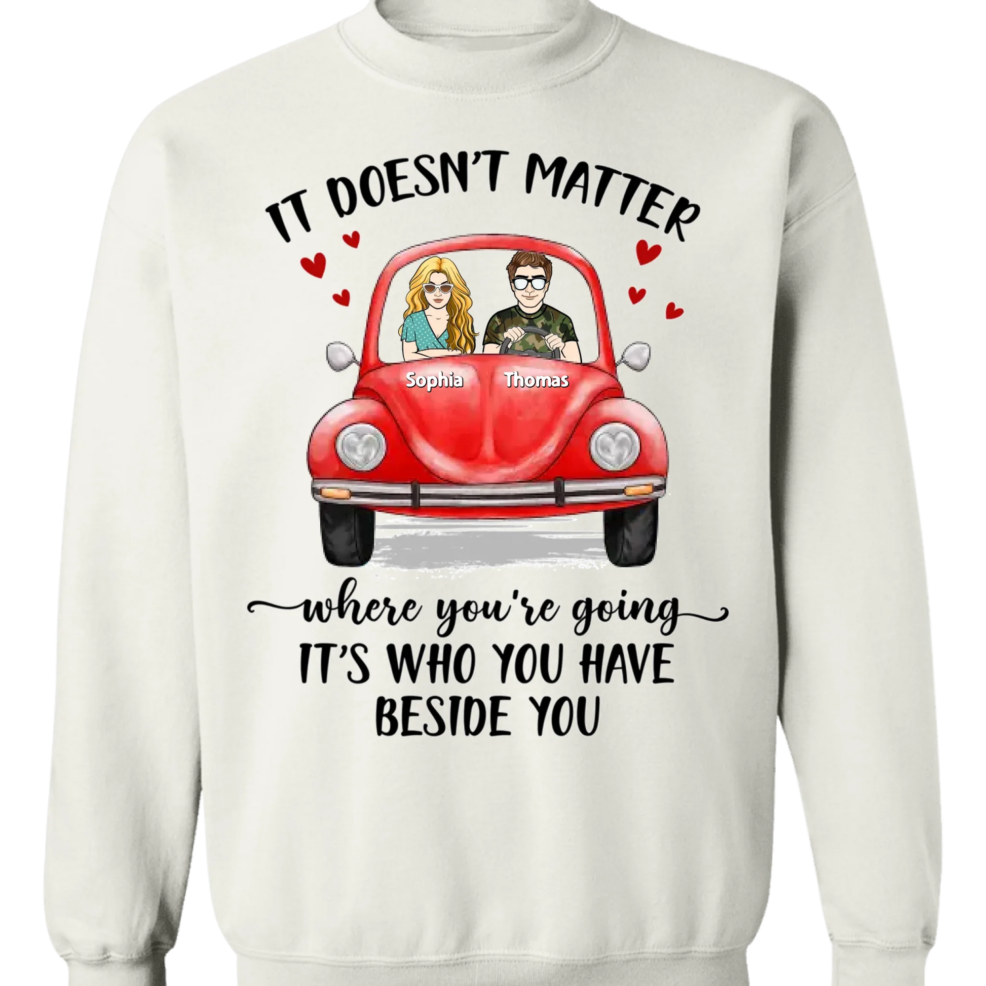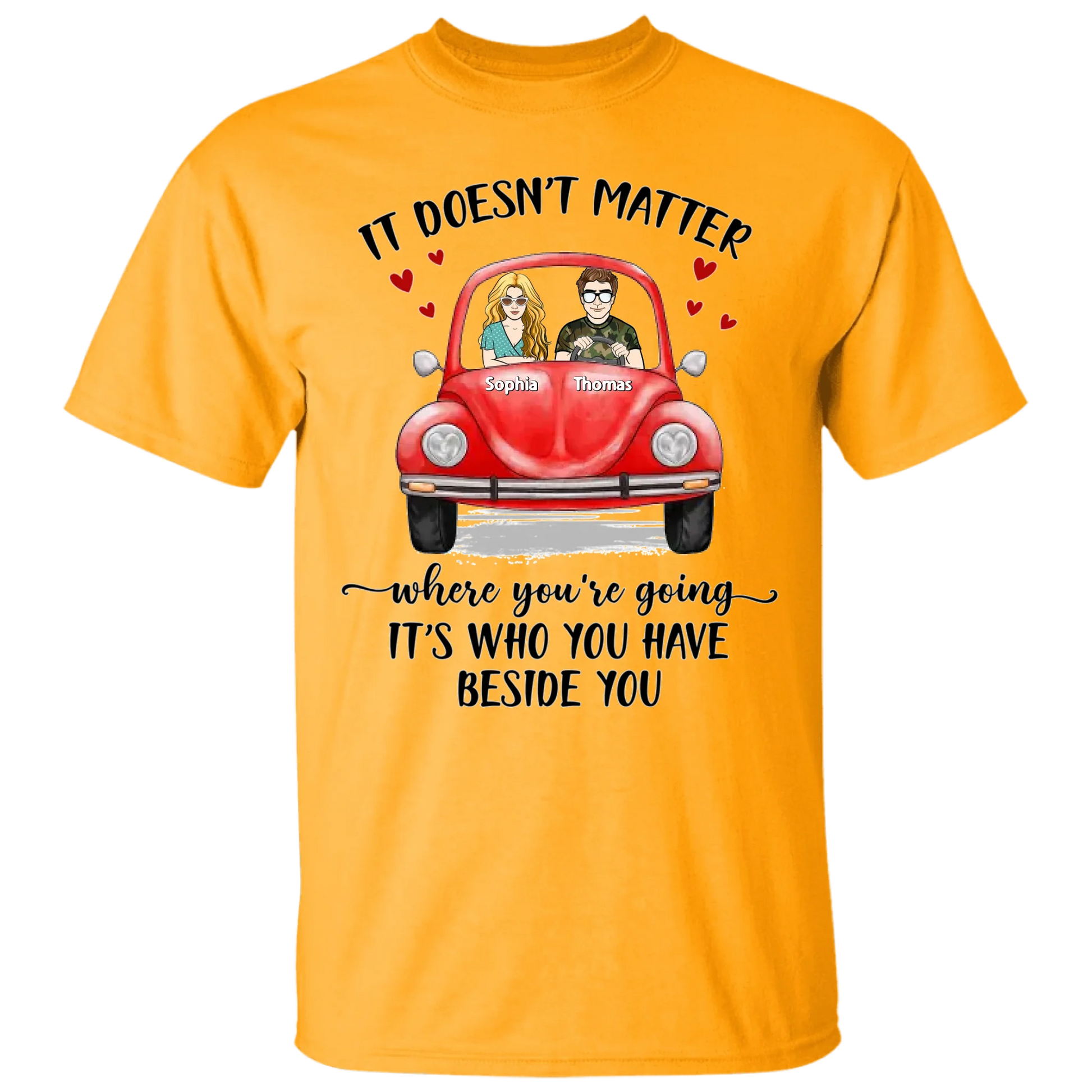 Celebrate your love story with this charming personalized couple shirt featuring a vintage Volkswagen Beetle design. Each tee is customized with your names, creating a one-of-a-kind keepsake that captures your unique bond. The classic car imagery adds nostalgic appeal and timeless style, making it an ideal gift for anniversaries, engagements, or simply showing off your partnership. Crafted for comfort and durability, this shirt works perfectly for casual outings, date nights, or matching couple moments. A thoughtful way to wear your connection with pride.