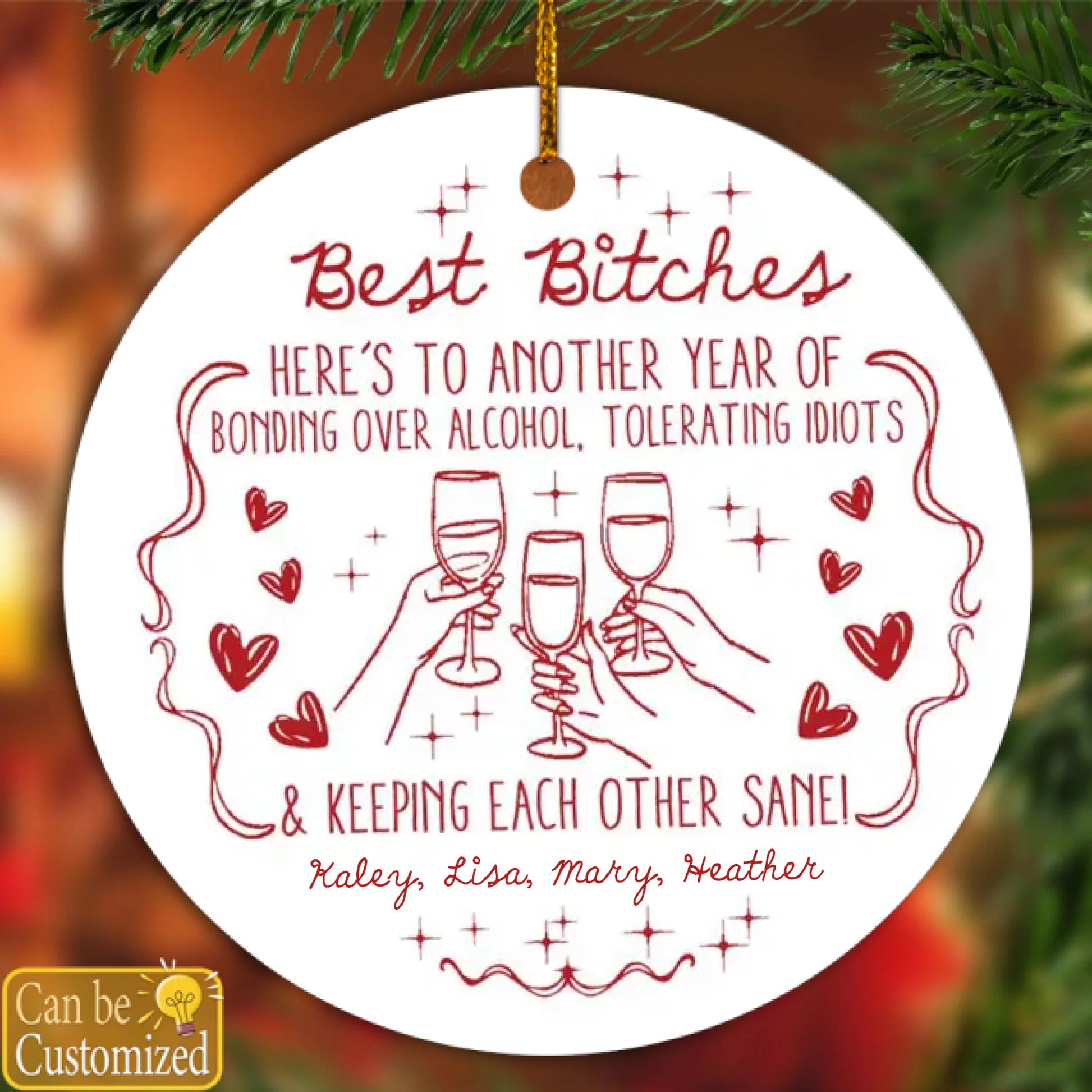 Best Friends Personalized Christmas Ornament – Funny Best Bitches Gift for Friends & Sisters, Custom Year Keepsake
