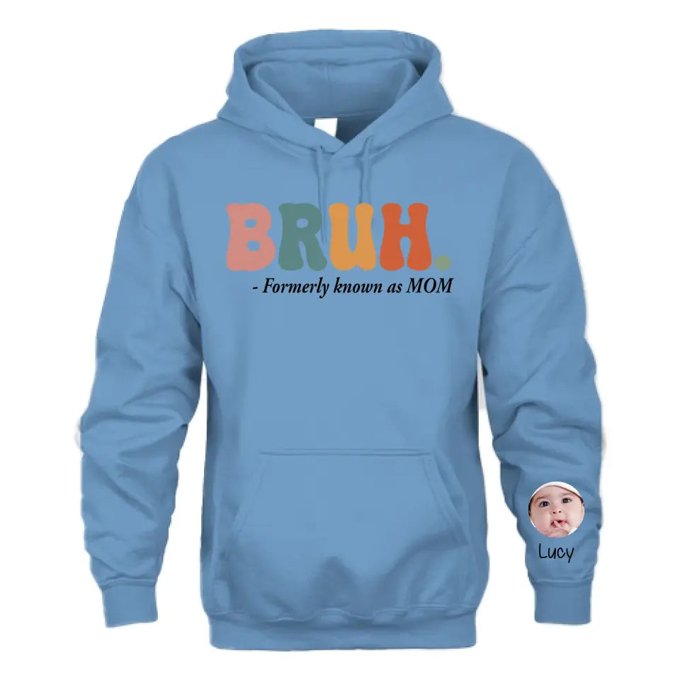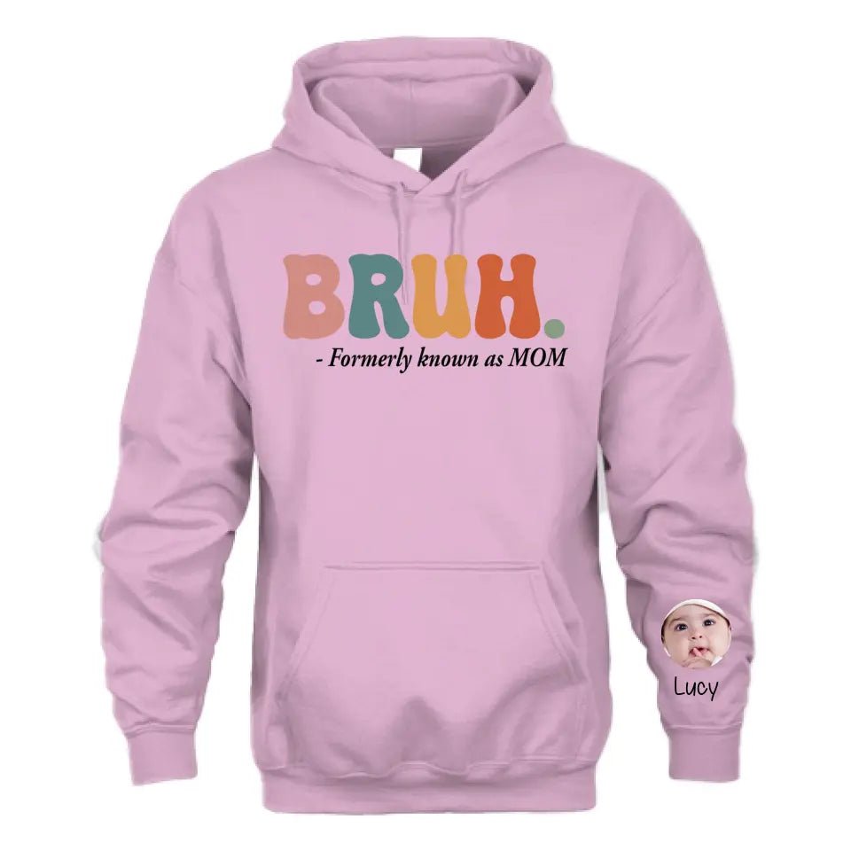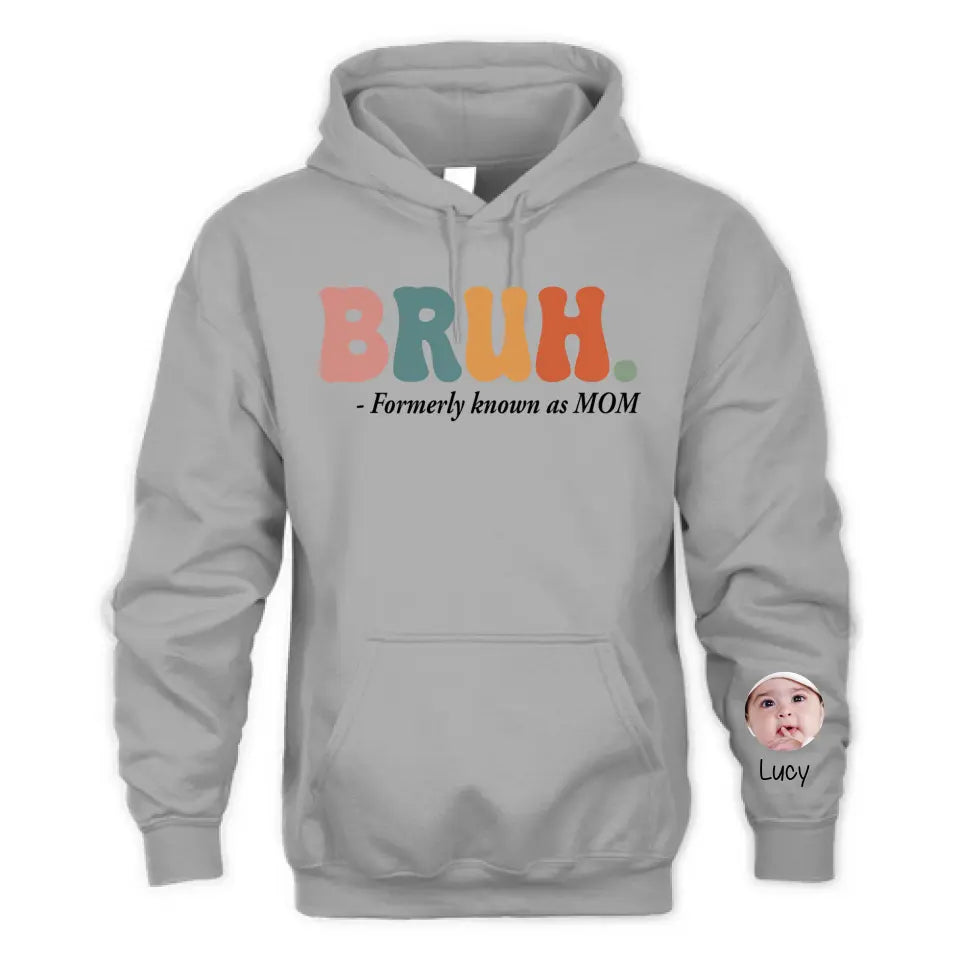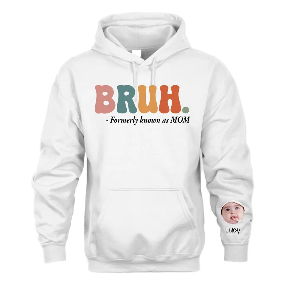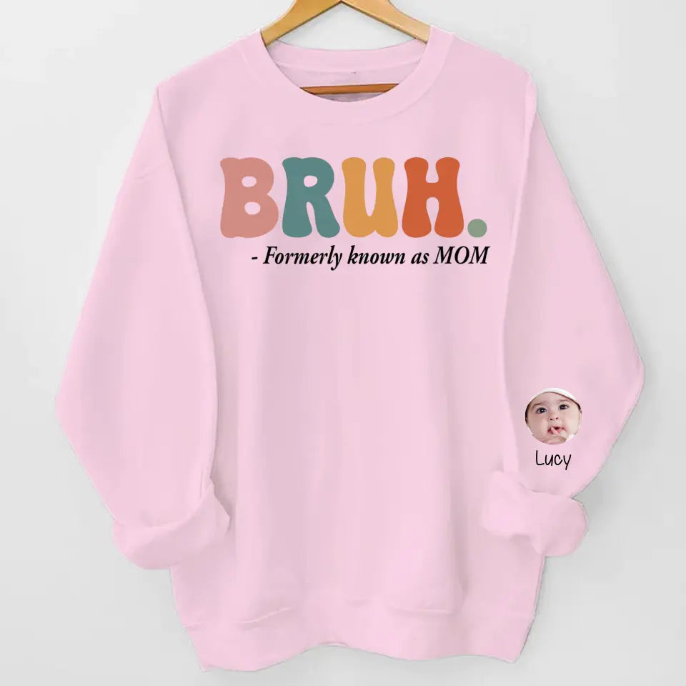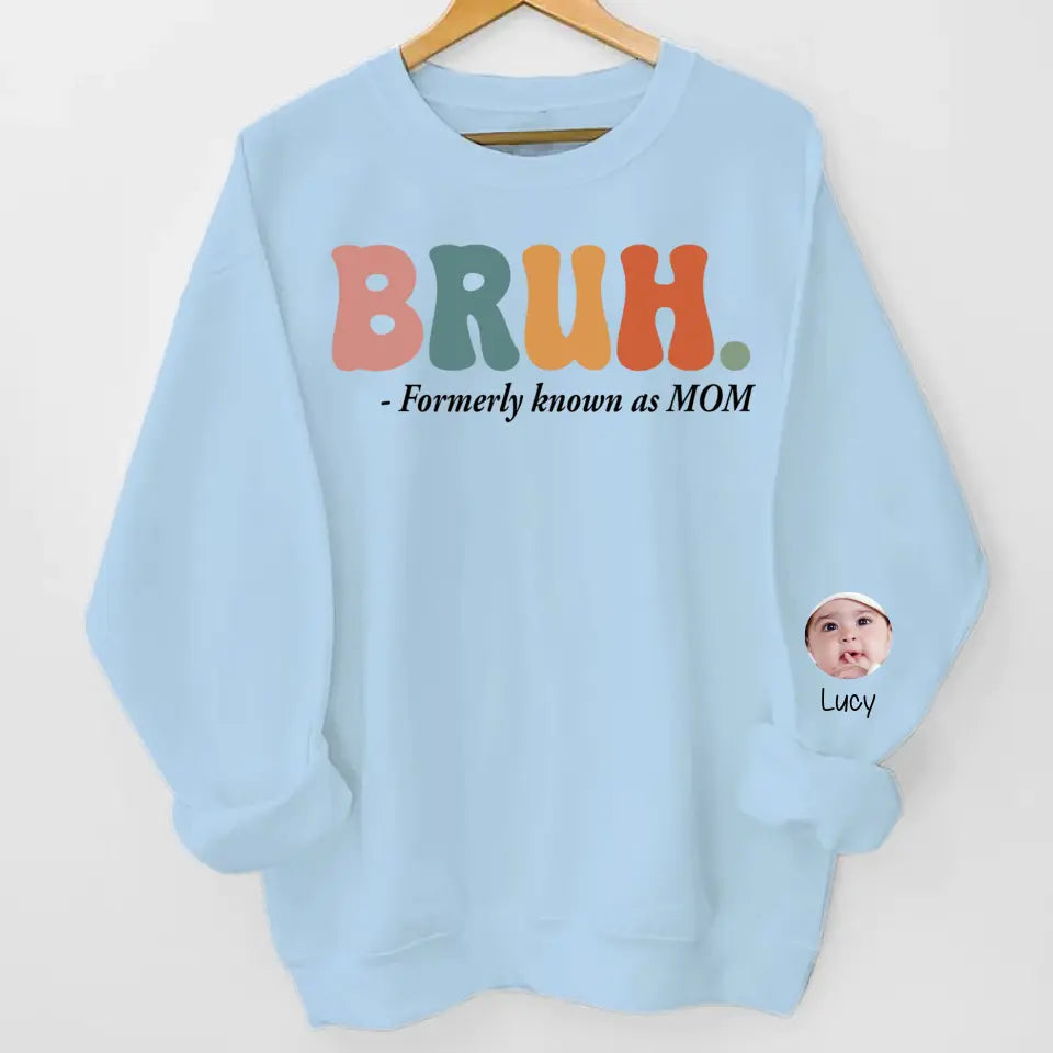 Bruh Formerly Known As Mom Personalized Sweatshirt with Custom Face Photo on Sleeve, Gifts For Mom