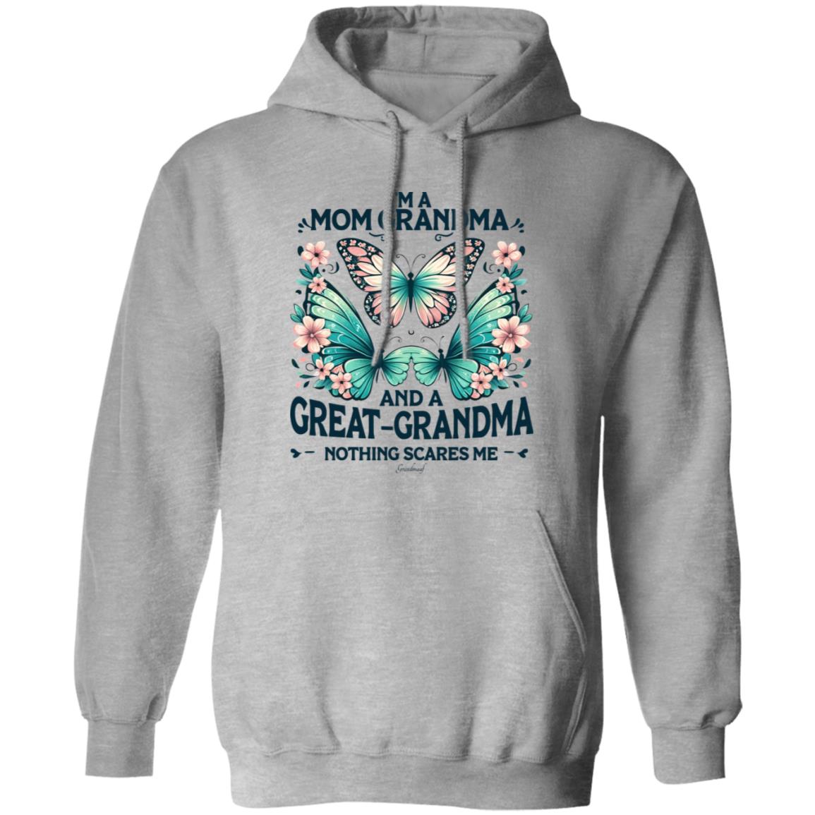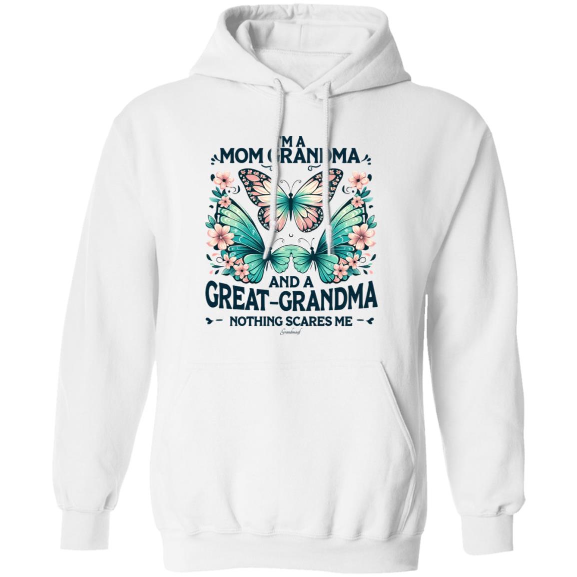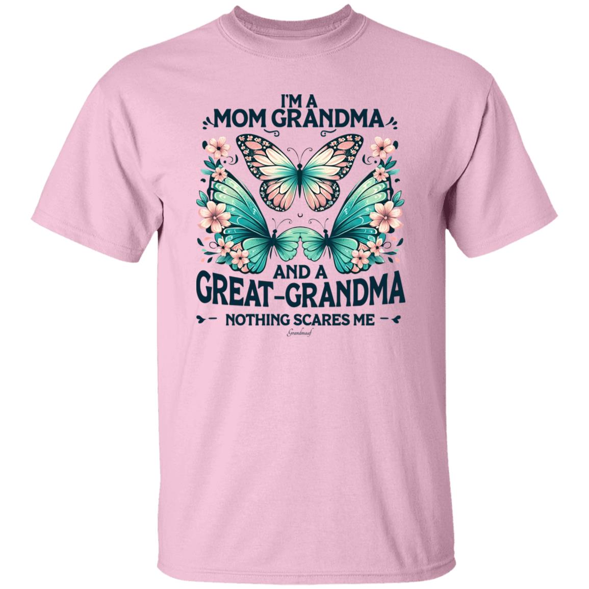 This shirt features a beautiful butterfly design and proudly displays the statement "I'm a Mom, Grandma, and Great Grandma - Nothing Scares Me." Show your love and pride for motherhood and grandmotherhood with this unique and meaningful gift for yourself or for the special moms and grandmas in your life.