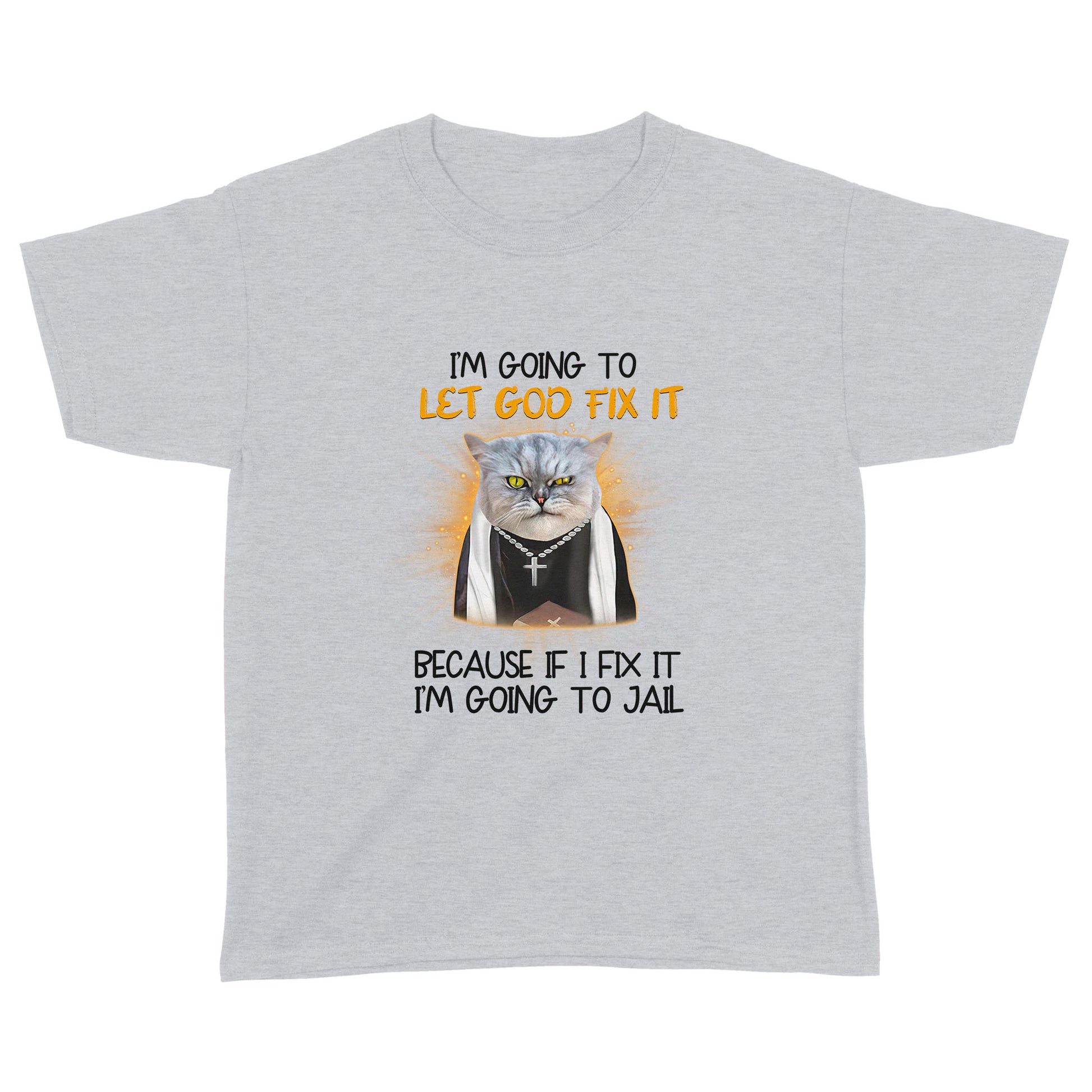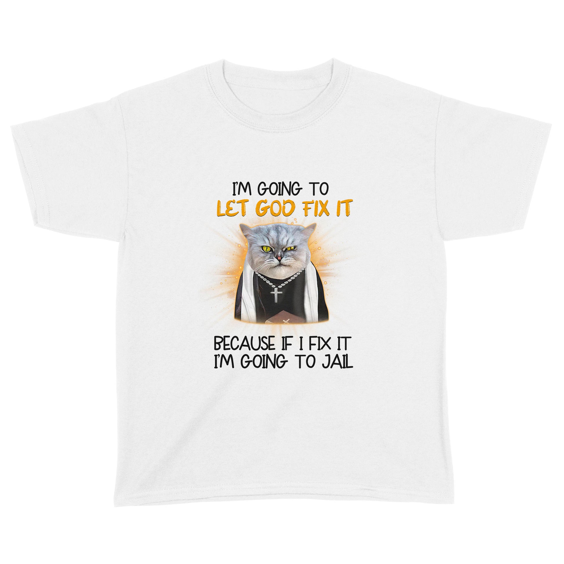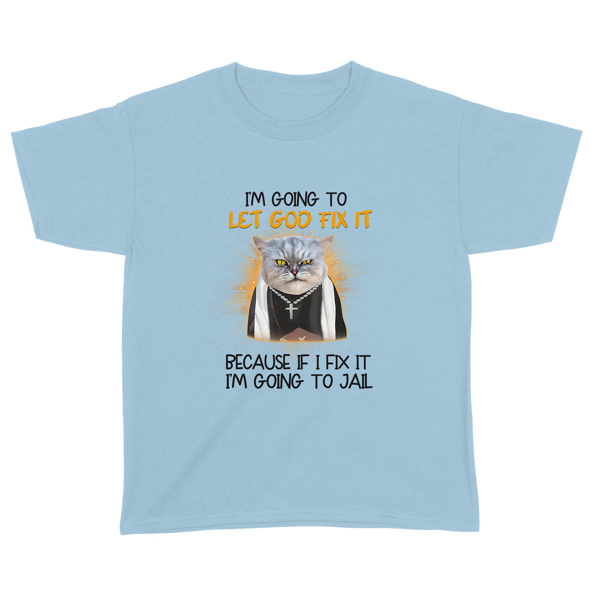 Cat Jesus I'm Going To Let God Fix It Because If I Fix It I'm Going To Jail Funny Shirt