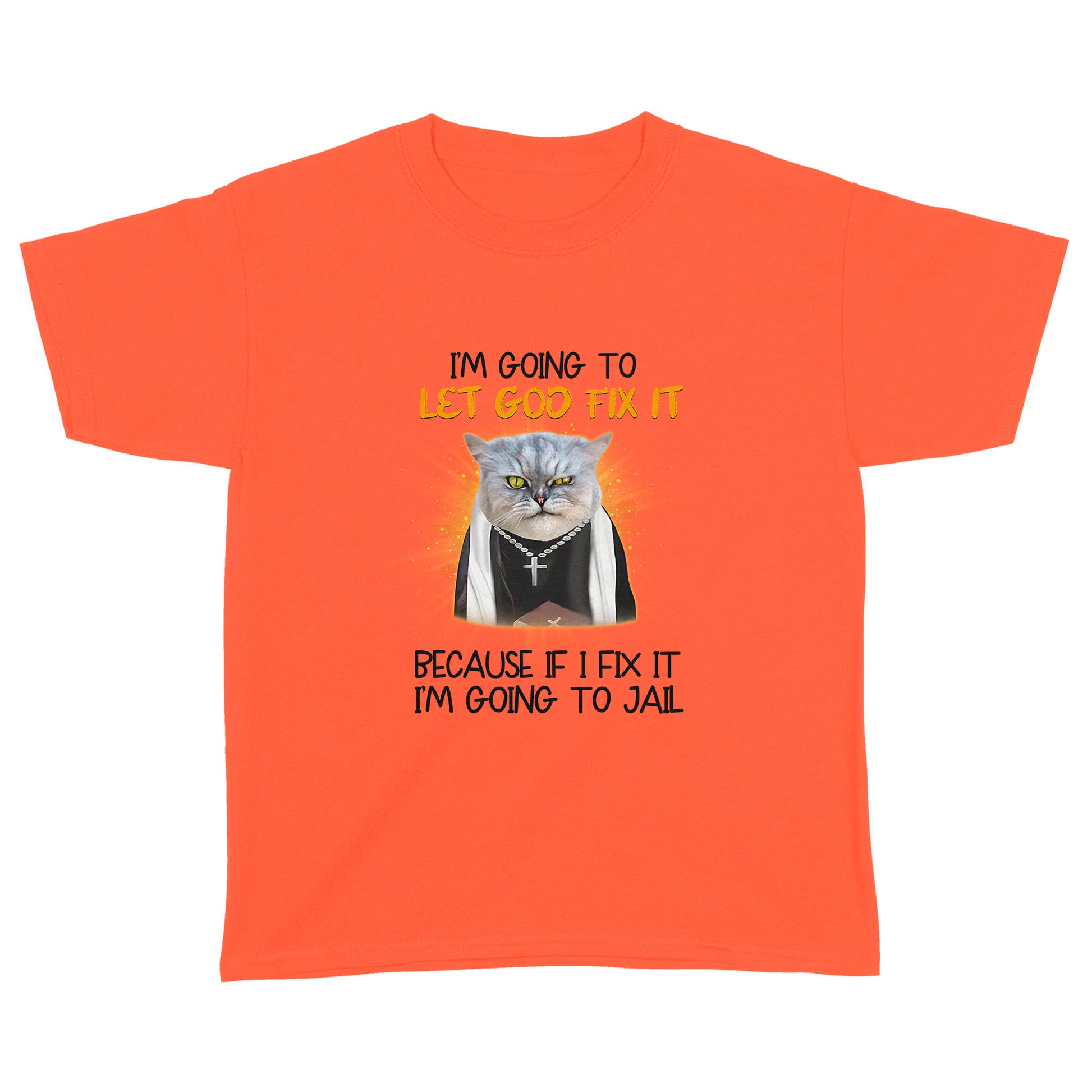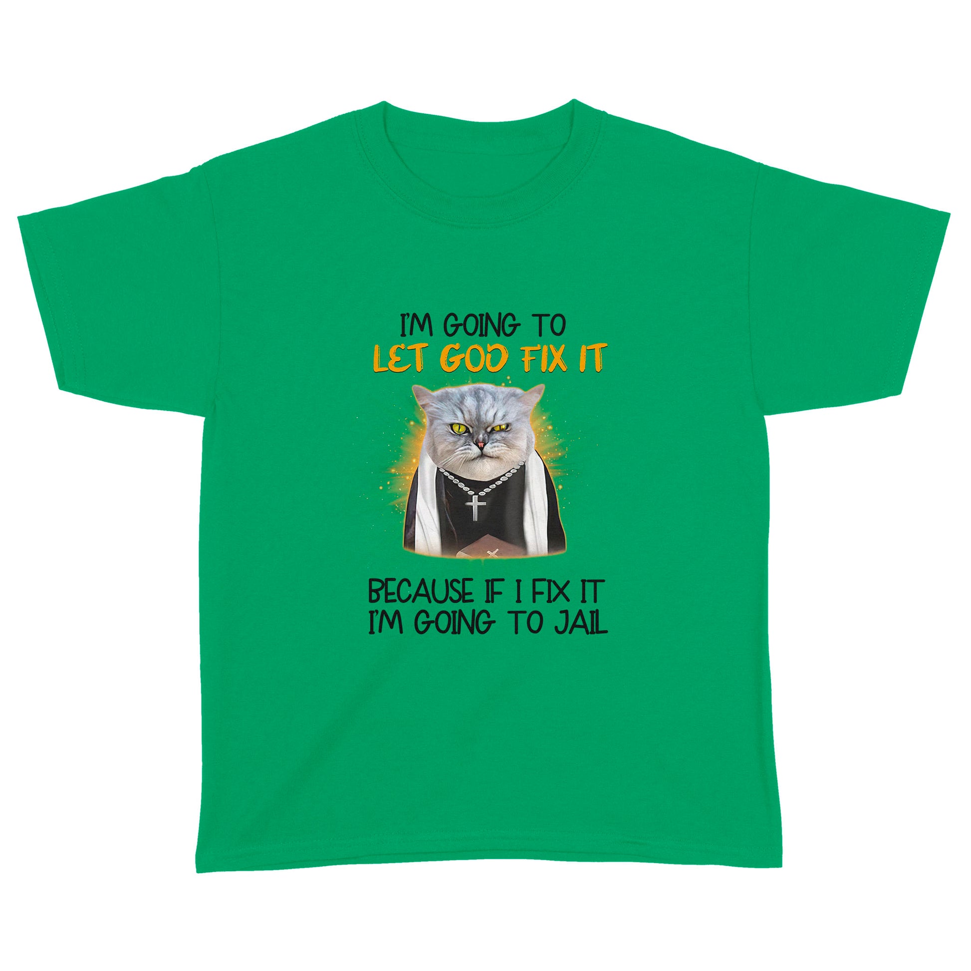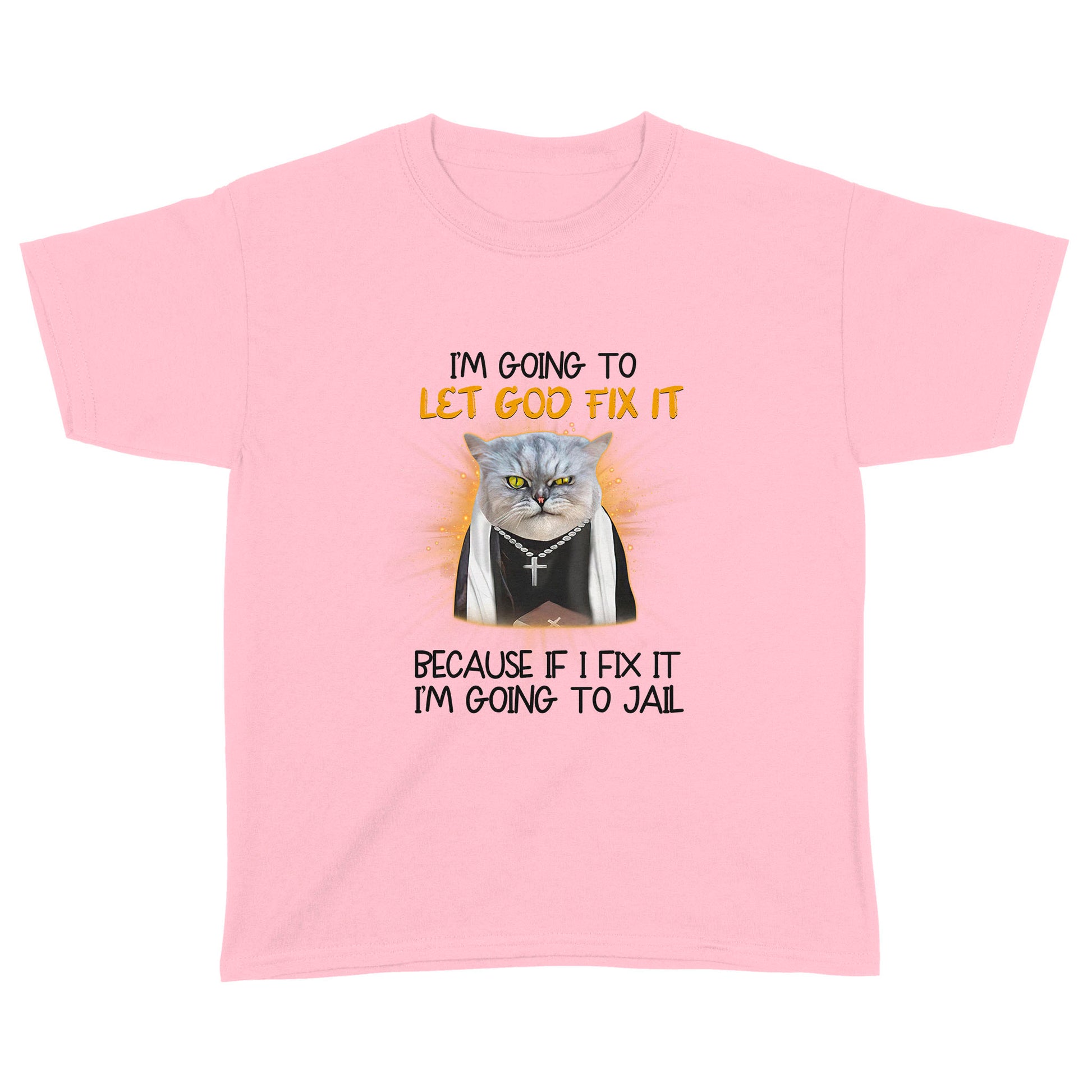 Cat Jesus I'm Going To Let God Fix It Because If I Fix It I'm Going To Jail Funny Shirt