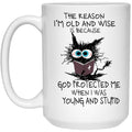 Cat The Reason I'm Old And Wise Is Because God Protected Me Mugs Cat Lovers Funny Gift Mug