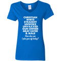 Christian White Straight Unwoke Unvaxxed Gun Owner Meat Eater Male How Else Can I Piss You Off Today Shirt Women's V-Neck T-Shirt