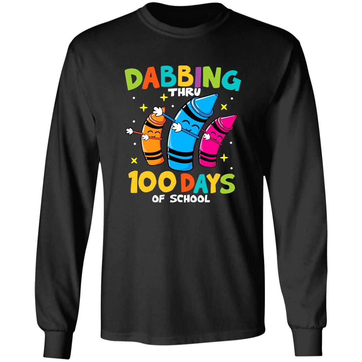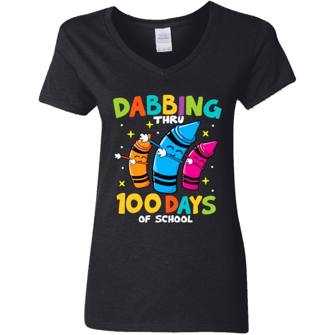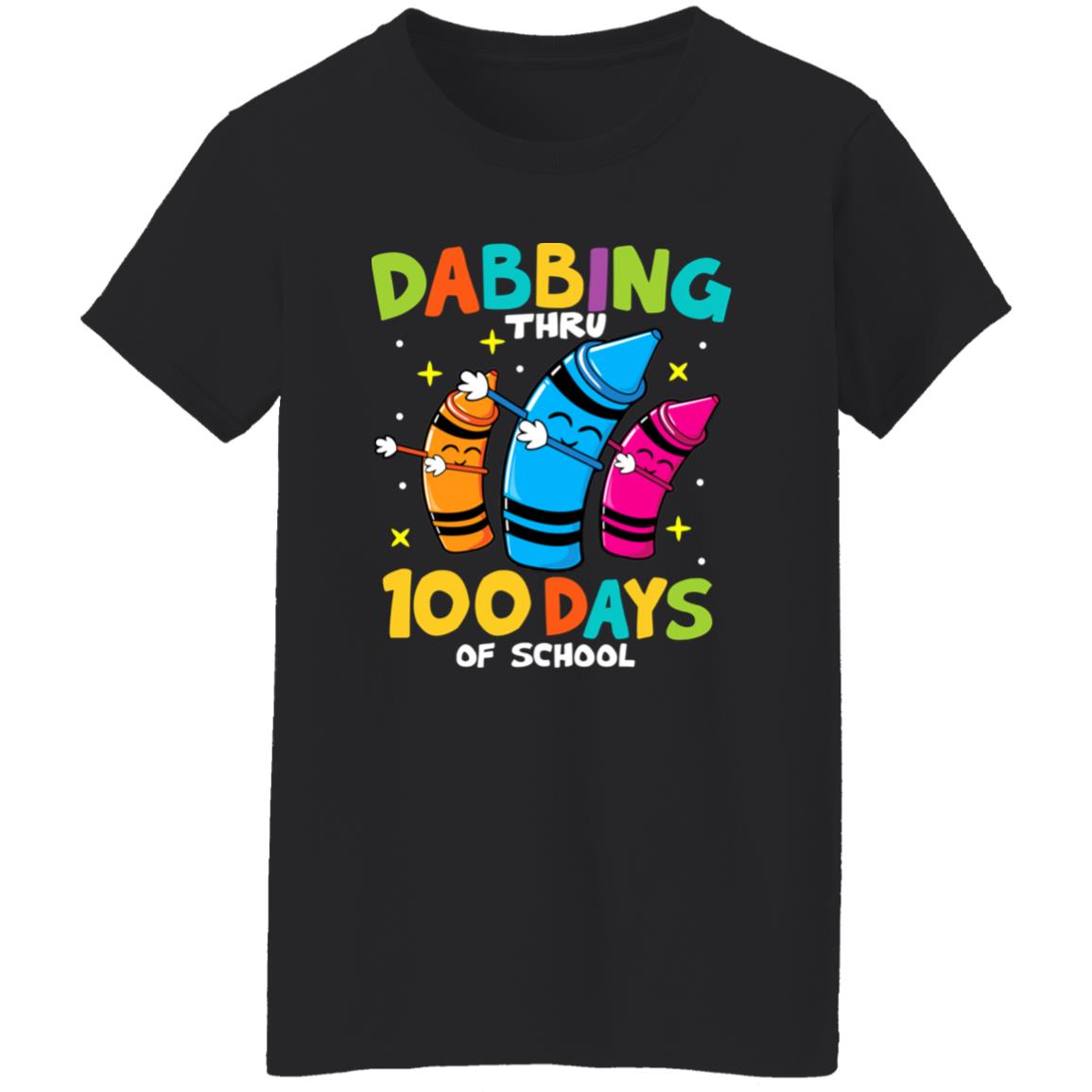 Dabbing Thru 100 Days Of School Crayon Teacher Kid 100th Day Shirt