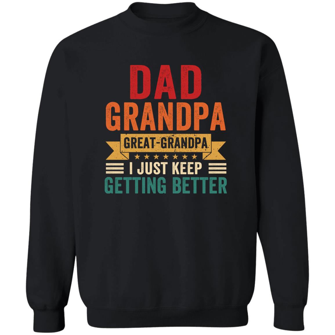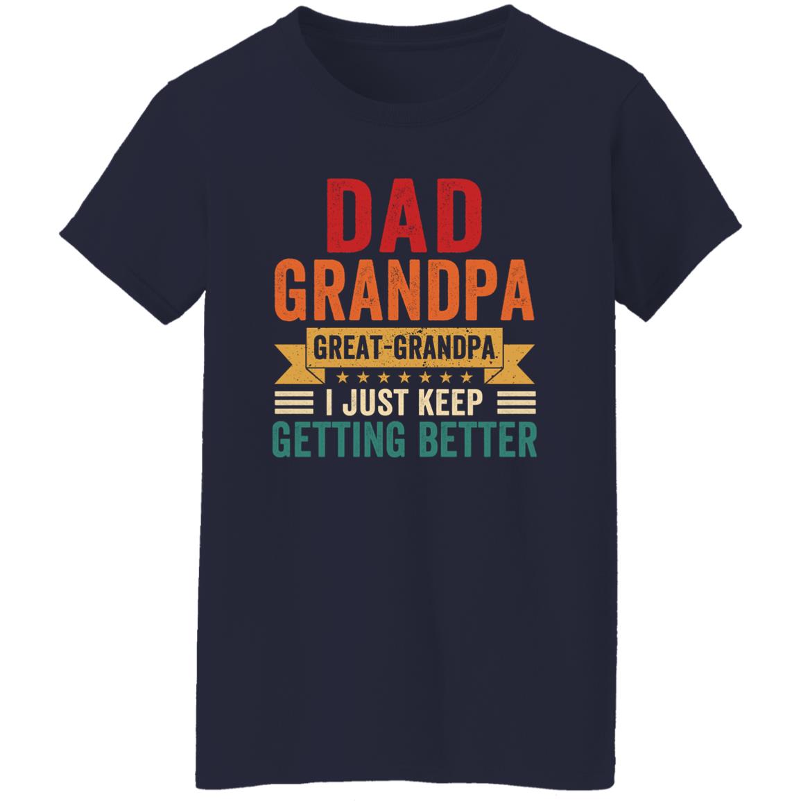 Dad Grandpa Great Grandpa I Just Keep Getting Better Shirt. Perfect gift idea for Birthday, Party, Vacation or Any Occasion, Holidays, Halloween, Christmas…Designed, printed, and shipped from the United States.