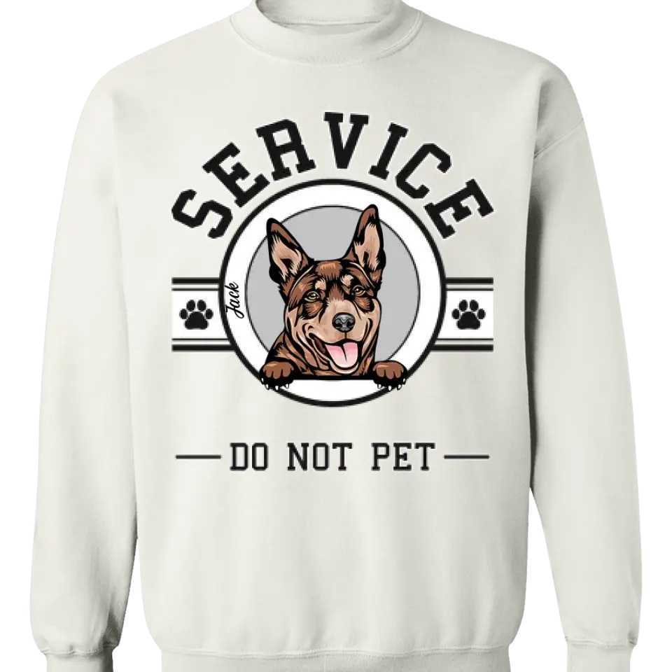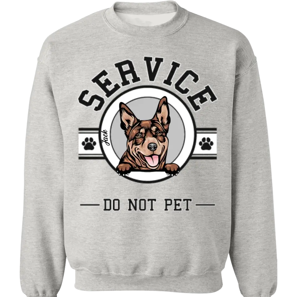 Dog Service Human Logo Personalized T-Shirt - Custom Dog Lover Shirts Gift For Dog. Elevate your casual wardrobe with the Sleeve Printed Standard Crew Neck Sweatshirt, a unique and stylish piece that keeps you comfortable and warm. Eye-catching printing on both sleeves, allows you to express your individuality and style. Perfect for yourself or as a personalized gift for a loved one.