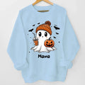 Fall Season Halloween Grandma Boo Personalized Shirt, Halloween Gift For Grandma. Elevate your casual wardrobe with the Sleeve Printed Standard Crew Neck Sweatshirt, a unique and stylish piece that keeps you comfortable and warm. Eye-catching printing on both sleeves, allows you to express your individuality and style. Perfect for yourself or as a personalized gift for a loved one.