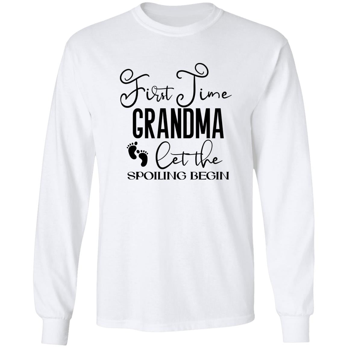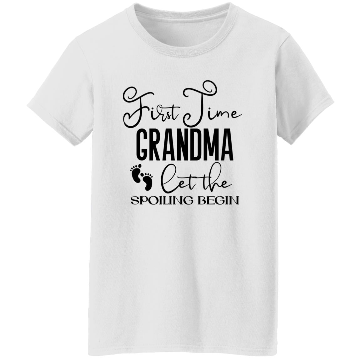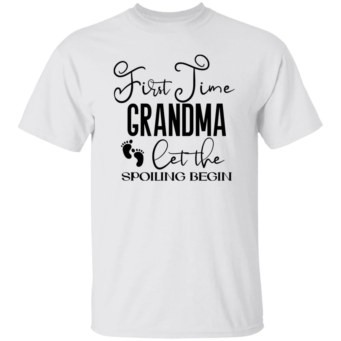 First Time Grandma Let the Spoiling Begin New 1st Time T-Shirt. Perfect gift idea for Birthday, Party, Vacation or Any Occasion, Holidays, Halloween, Christmas…Designed, printed, and shipped from the United States.