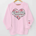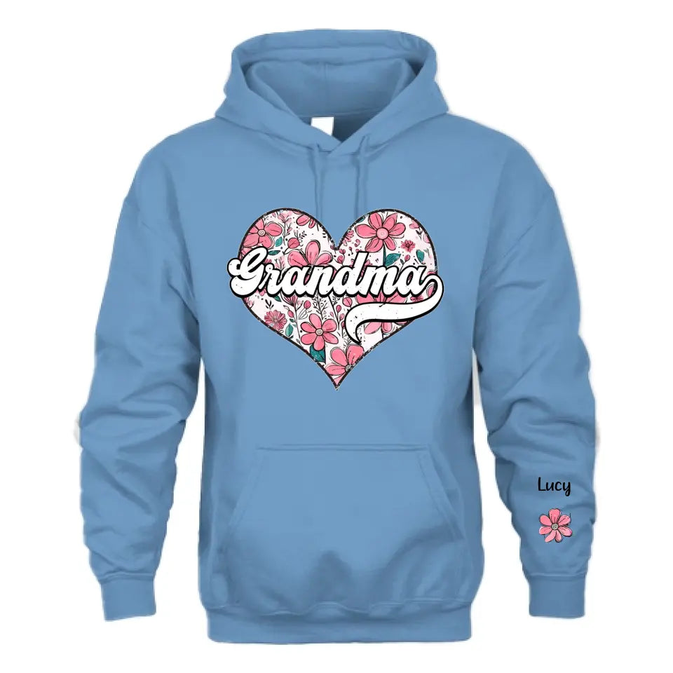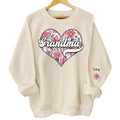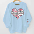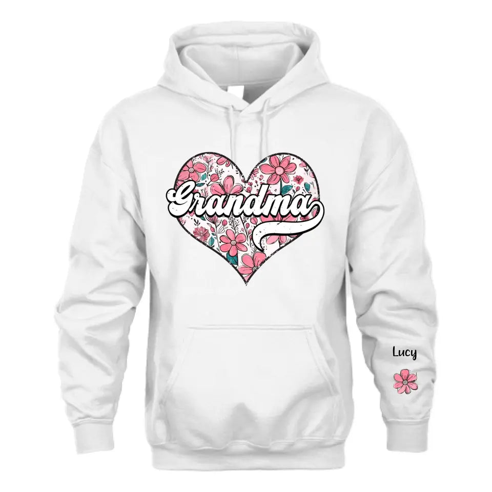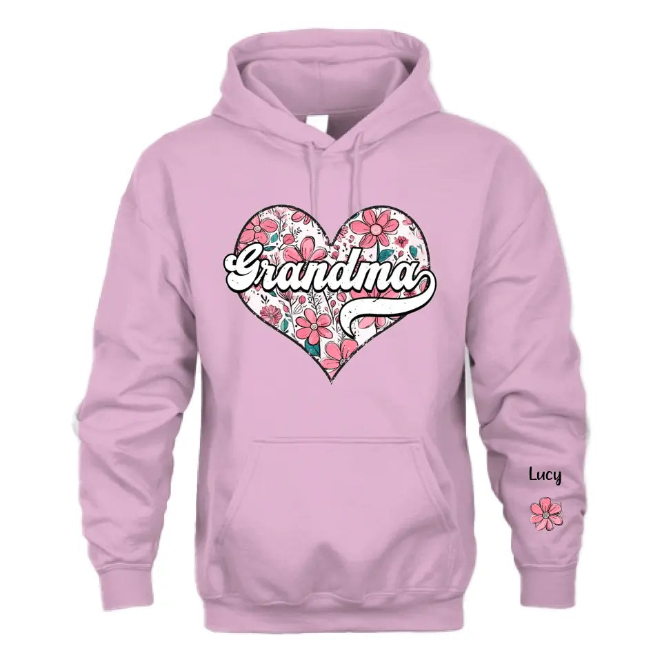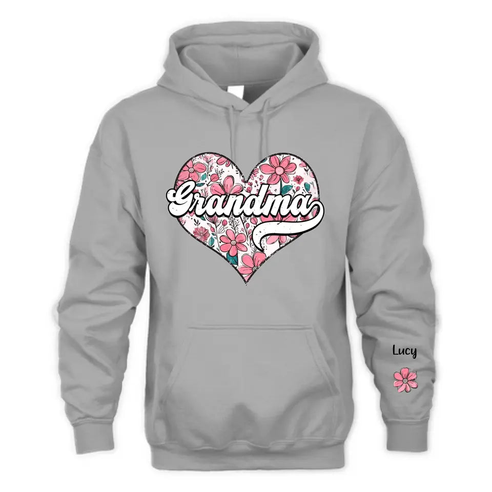 Flower Heart Grandma - Mama Personalized Sweatshirt with Design on Sleeve, Gift Gor Mom, Grandma