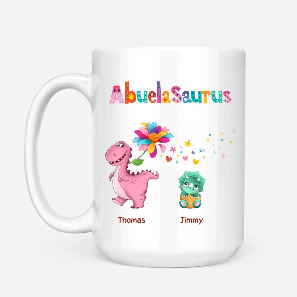 Funny Dinosaur Family Custom Name Grandmasaurus Mamasaurus Nanasaurus Personalized Mug Gift For Mom, Mother's Day Gift, Mama, Grandma Saurus Mother's Family Coffee Mug. Perfect gift idea for Birthday, Party, Vacation or Any Occasion, Holidays, Halloween, Christmas…