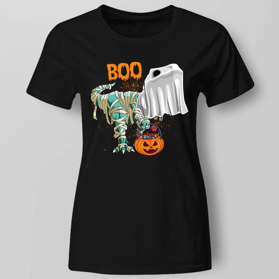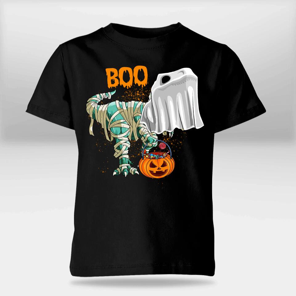 Ghost Dinosaur T-rex Funny Boo Halloween Boys Men Pumpkin Shirt