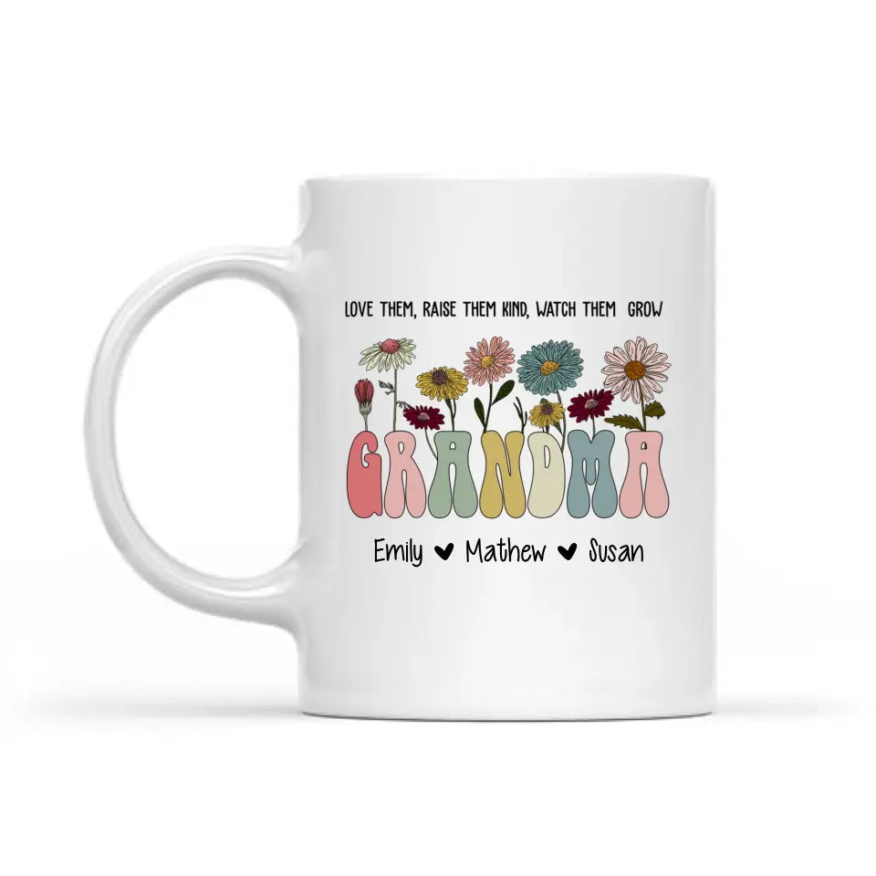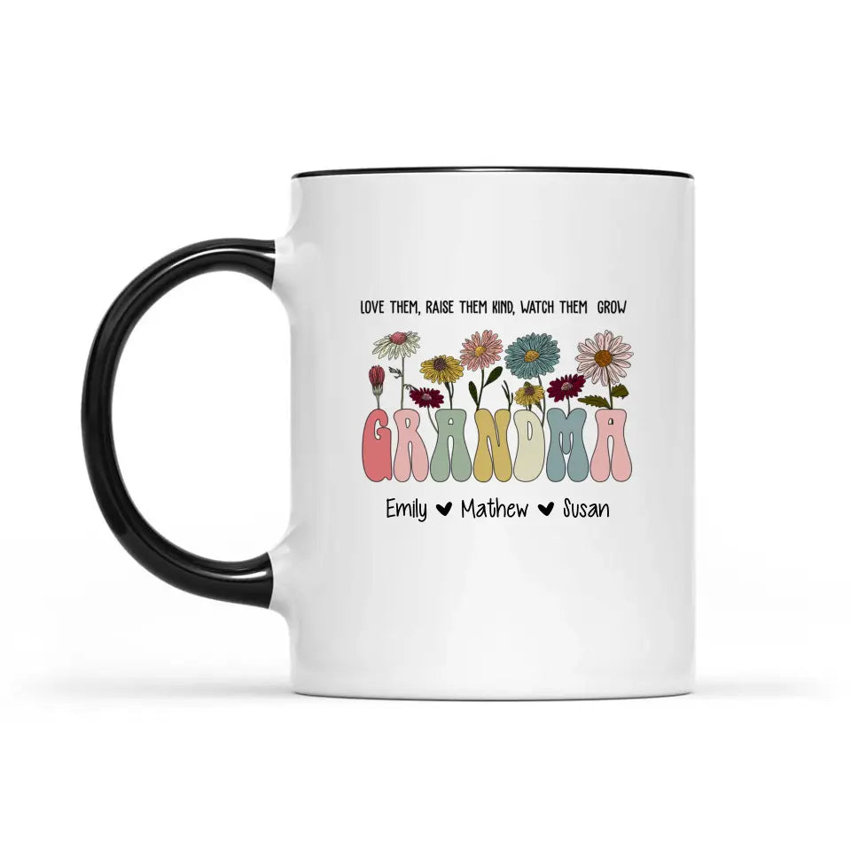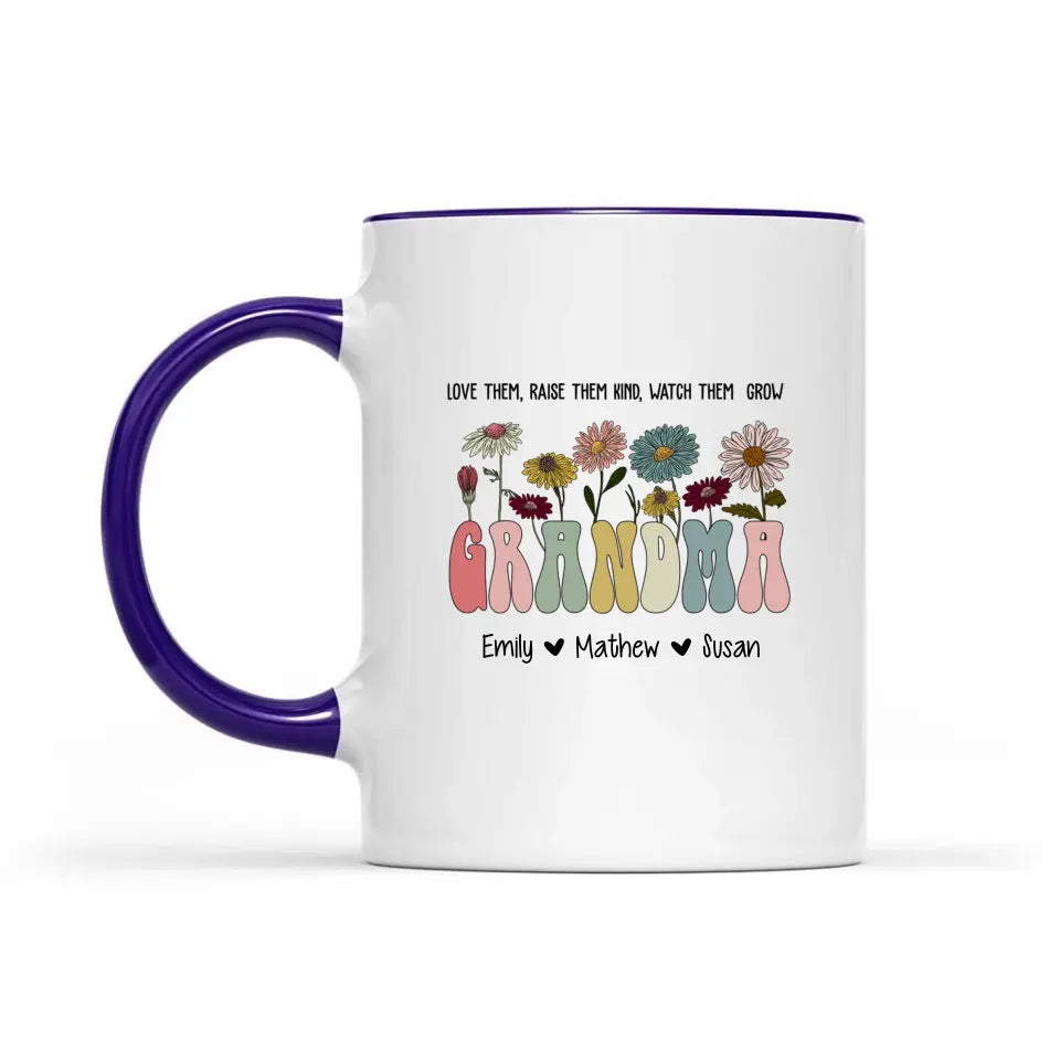 Grandma Flowers Colors Personalized Mugs - Best Gift For Grandma