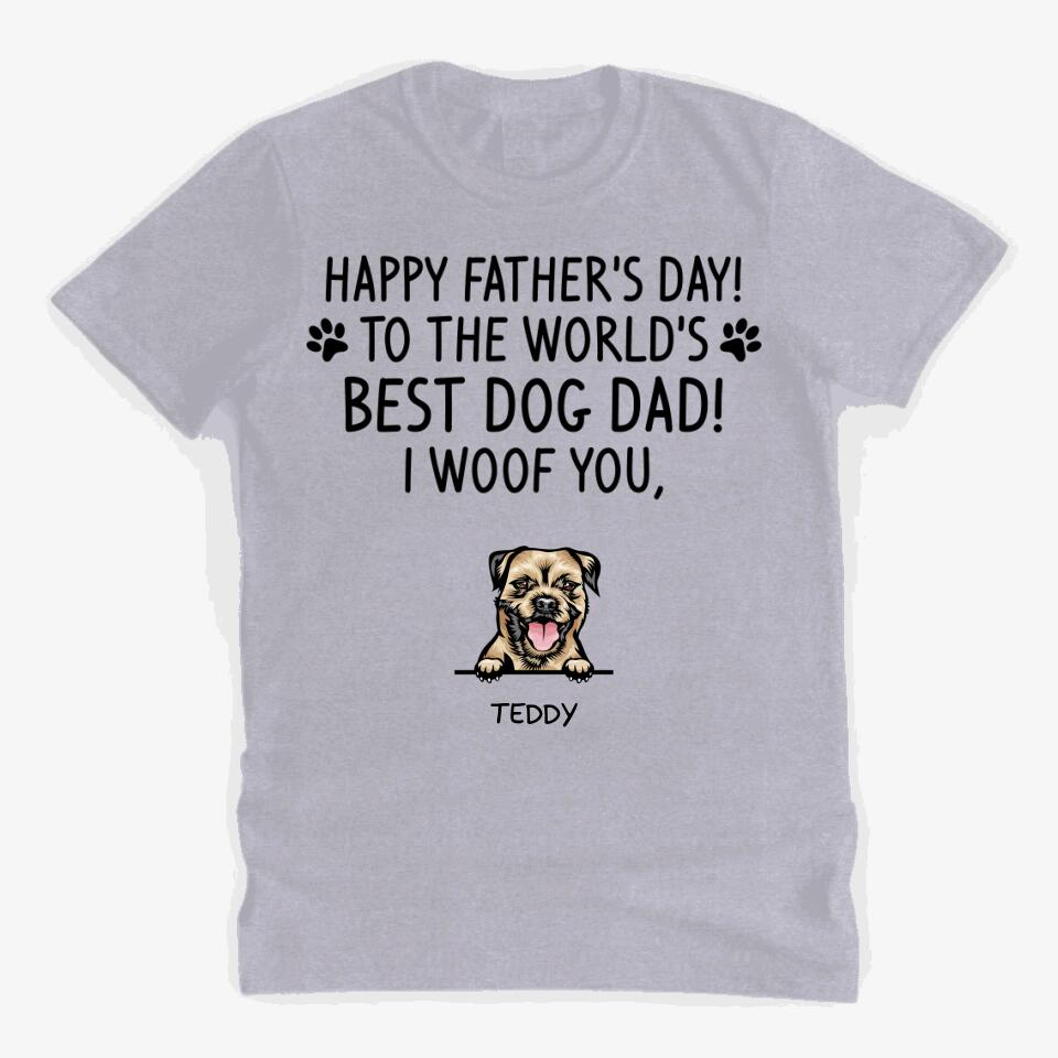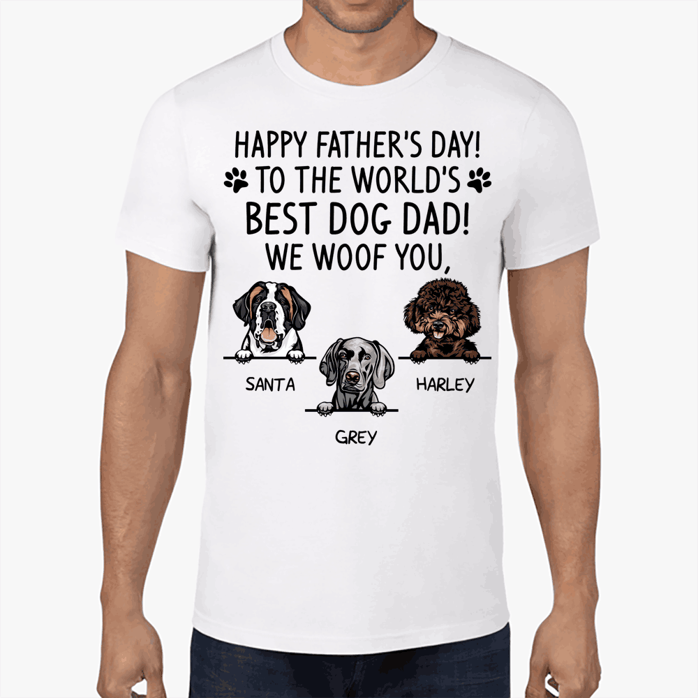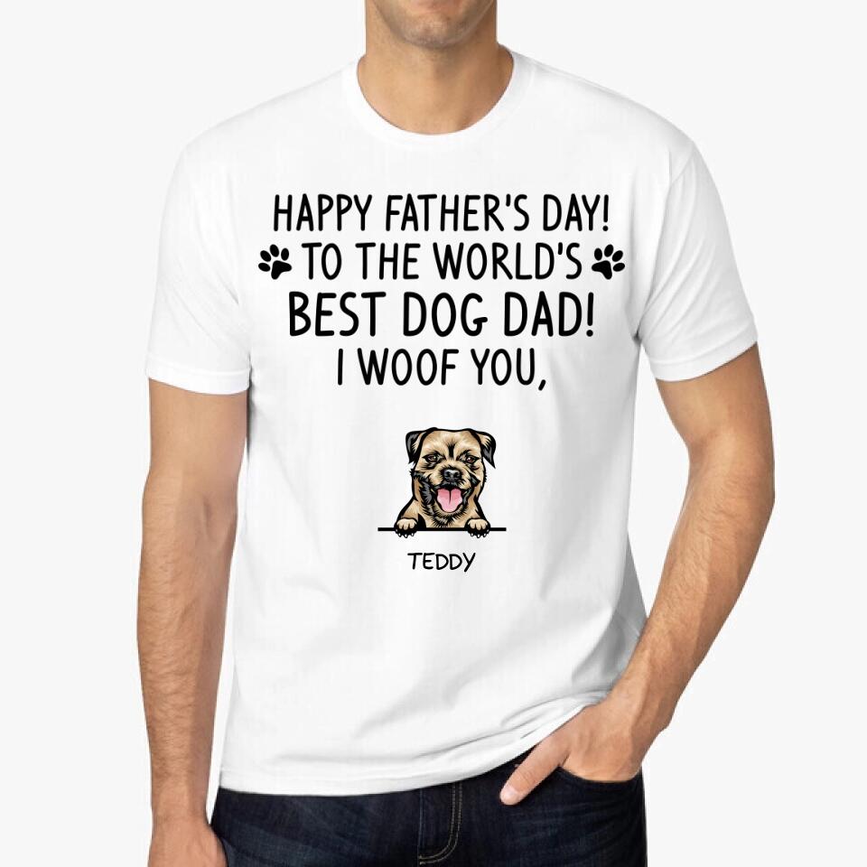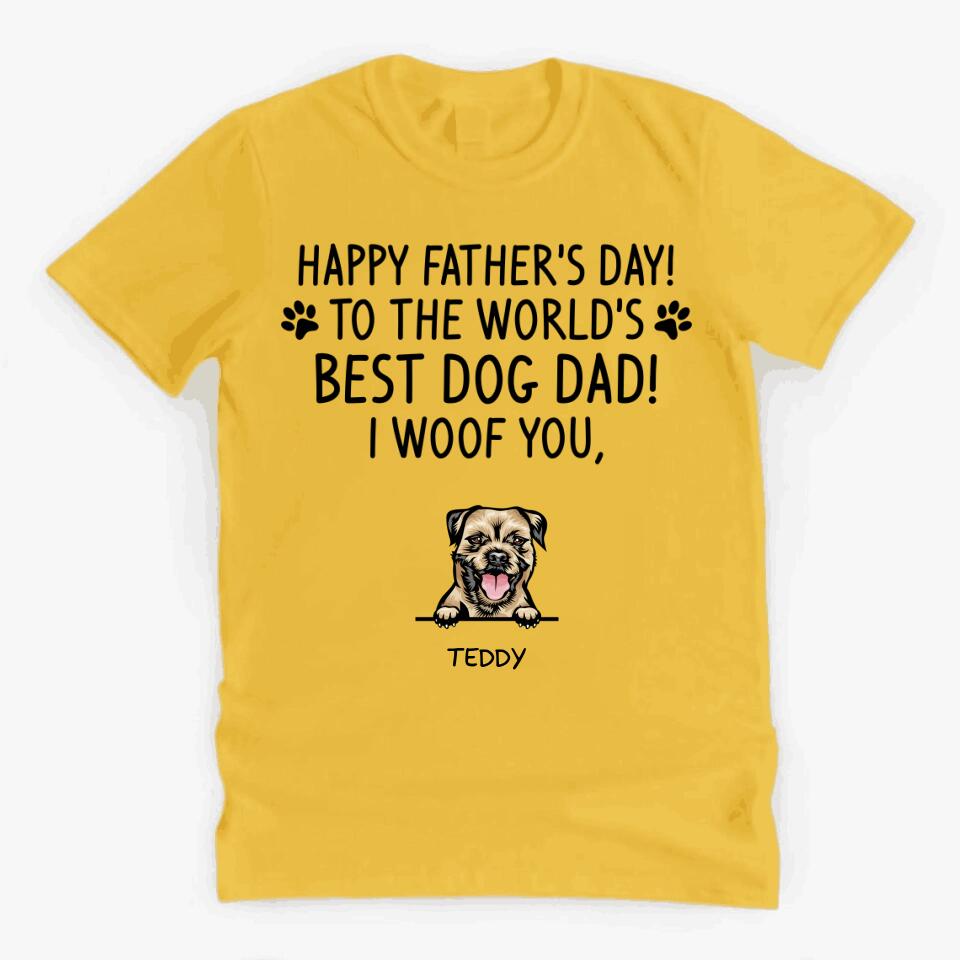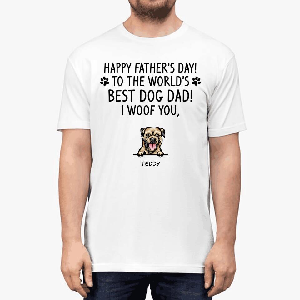Happy Father's Day To The World's Best Dog Dad We Woof You Shirt For Dog Lovers, Personalized Gift For Dad