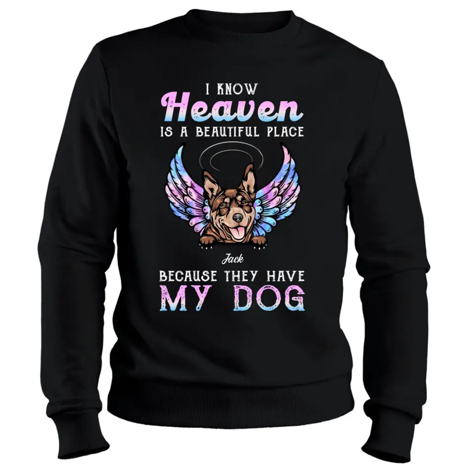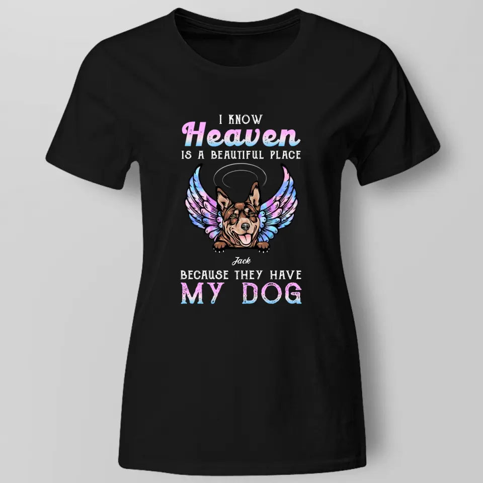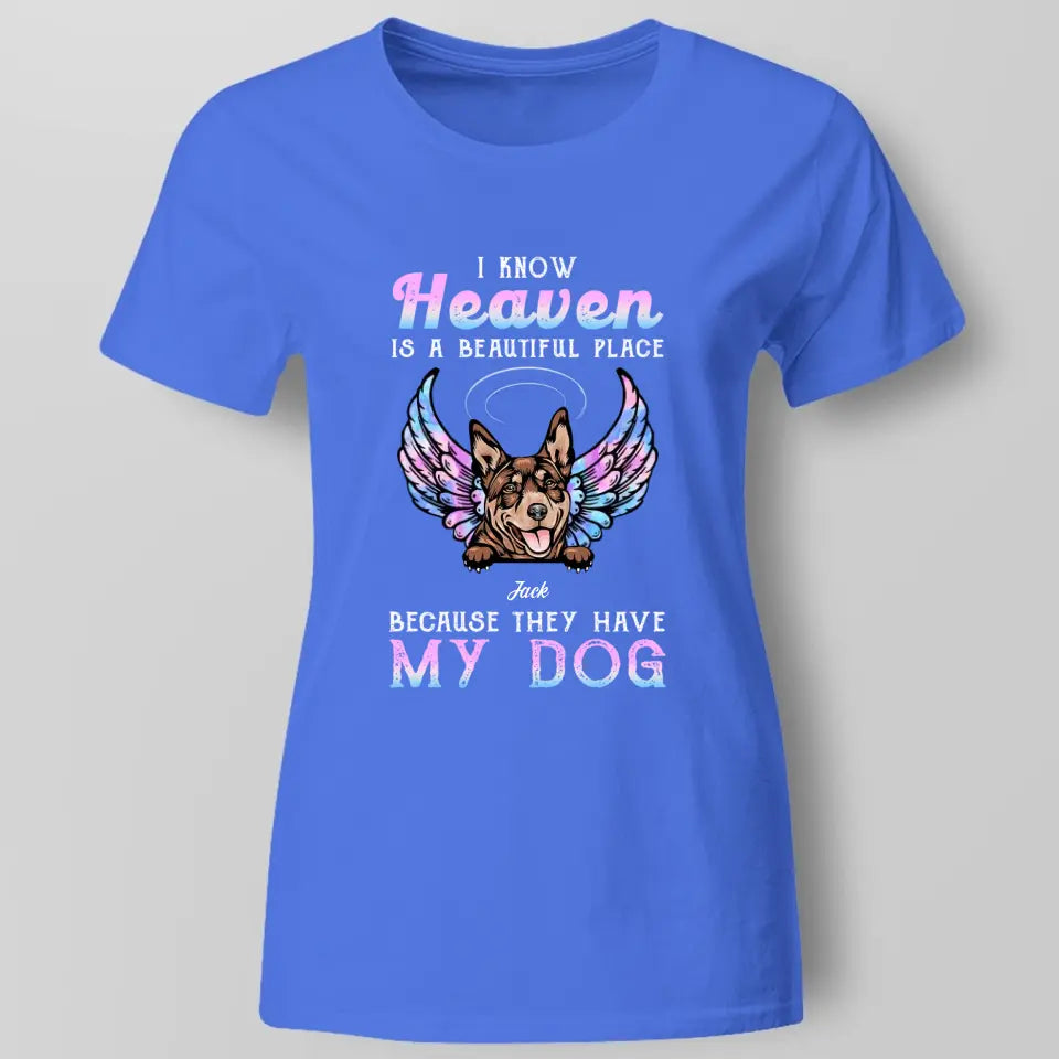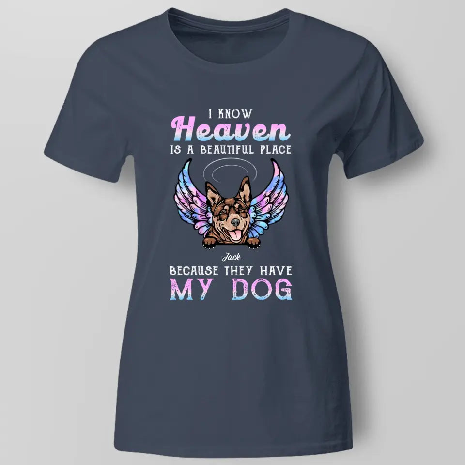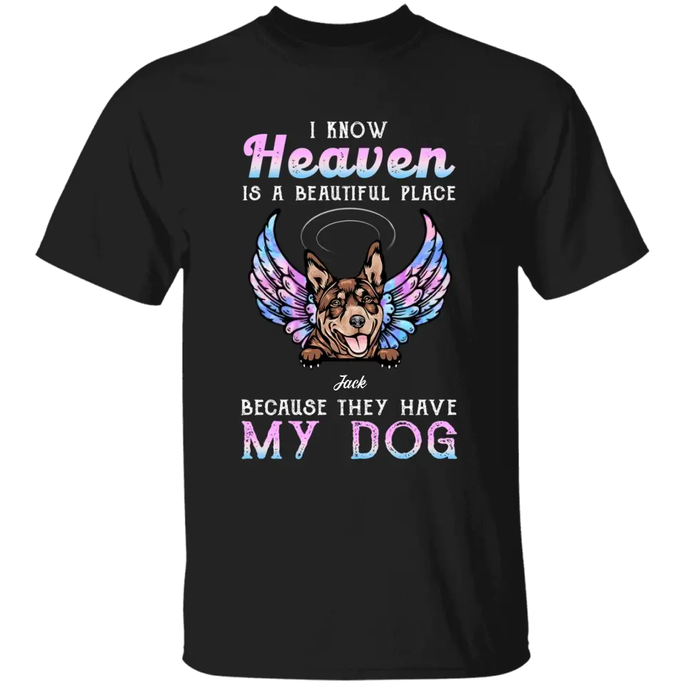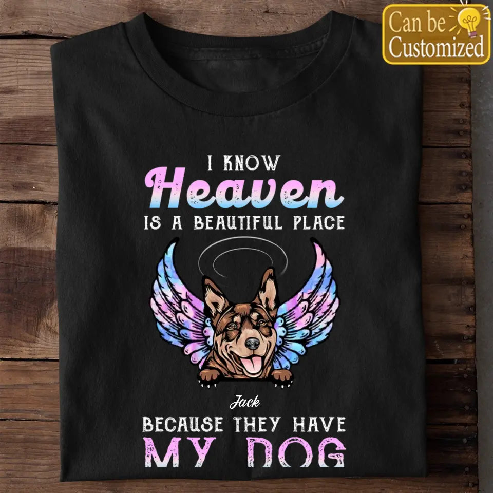 Heaven Is A Beautiful Place Dogs Personalized T-Shirt, Personalized Gift For Dog Lovers, Dog Dad, Dog Mom