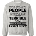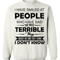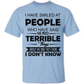 I Have Smiled At People Who Have Said The Most Terrible Things About Me And They Think I Don’t Know T-Shirt. Perfect gift idea for Birthday, Party, Vacation or Any Occasion, Holidays, Halloween, Christmas…Designed, printed, and shipped from the United States.