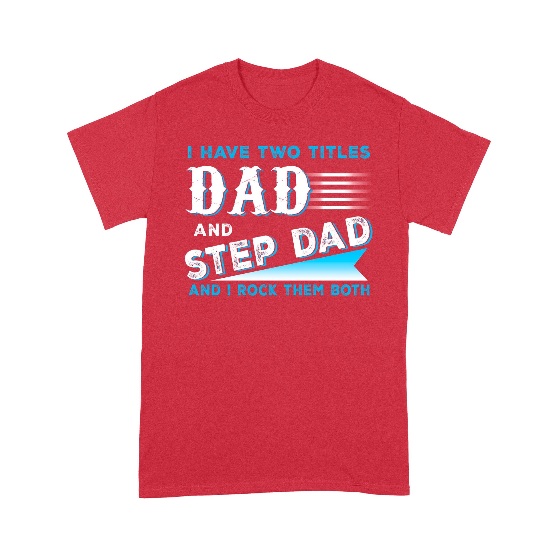I Have Two Titles Dad And Step Dad And I Rock Them Both Shirt Funny Fathers Day Gift - Standard T-shirt. Perfect gift idea for Birthday, Party, Vacation or Any Occasion, Holidays, Halloween, Christmas…