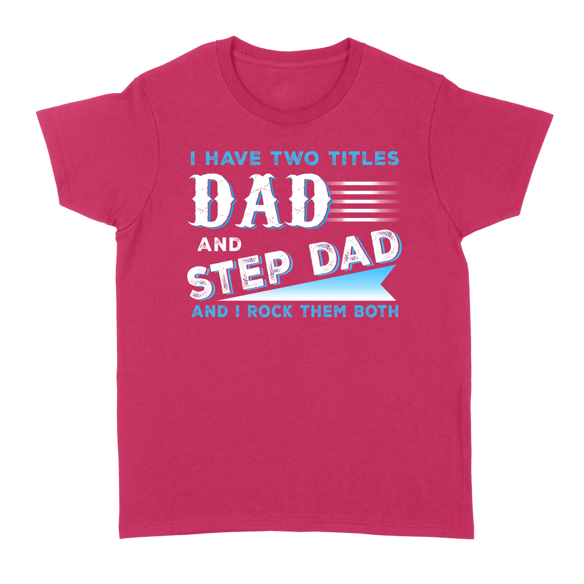 I Have Two Titles Dad And Step Dad And I Rock Them Both Shirt Funny Fathers Day Gift - Standard Women's T-shirt. Perfect gift idea for Birthday, Party, Vacation or Any Occasion, Holidays, Halloween, Christmas…