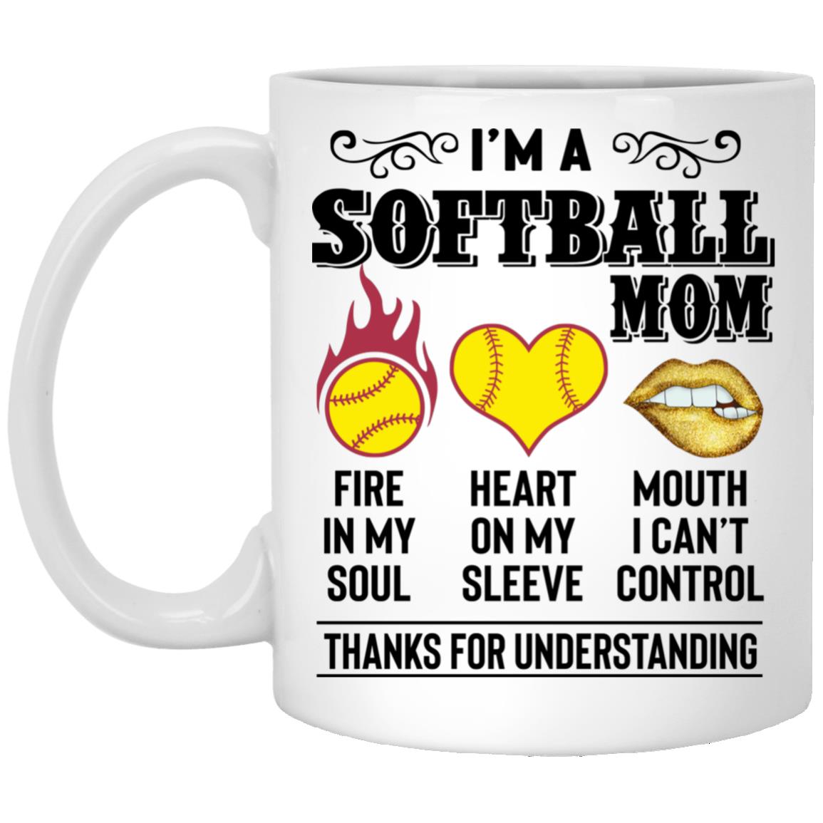 I’m A Softball Mom Fire In My Soul Heart On My Sleeve Mouth I Can't Control Gift Mug Perfect gift idea for Birthday, Party, Vacation or Any Occasion, Holidays, Halloween, Christmas…