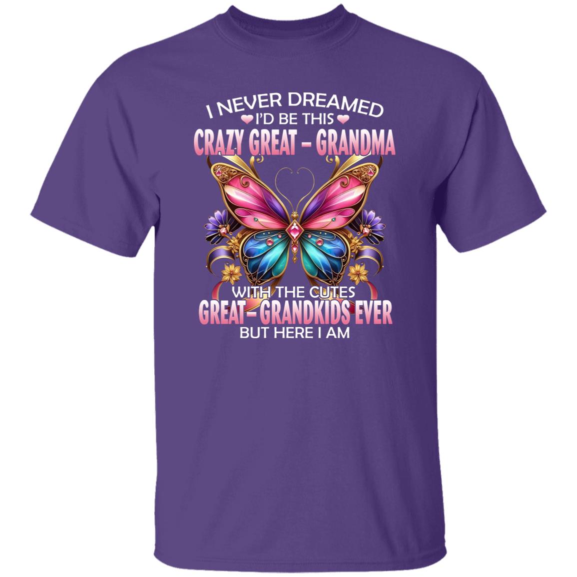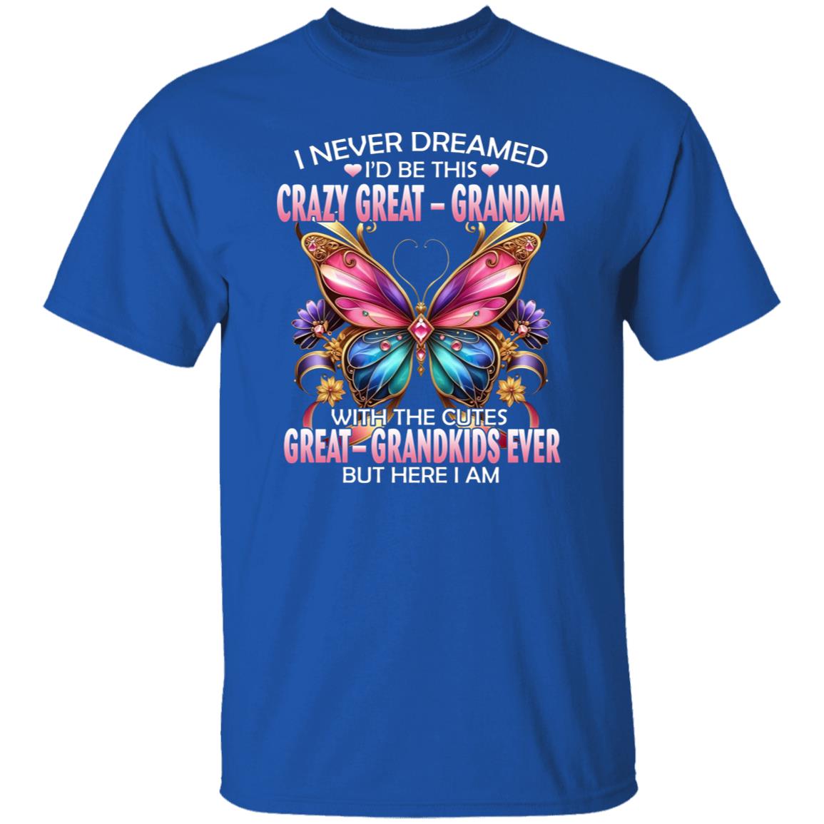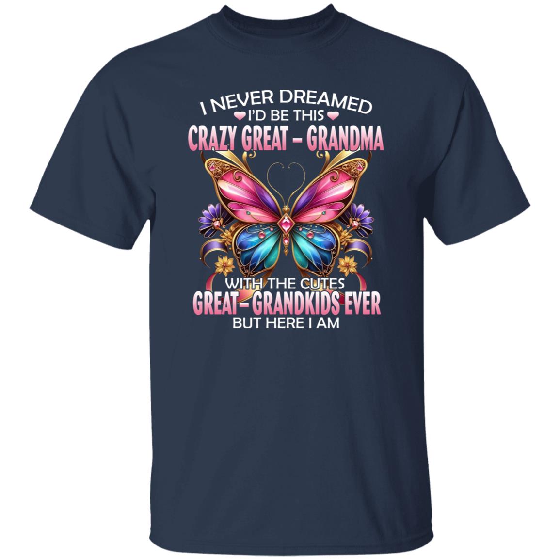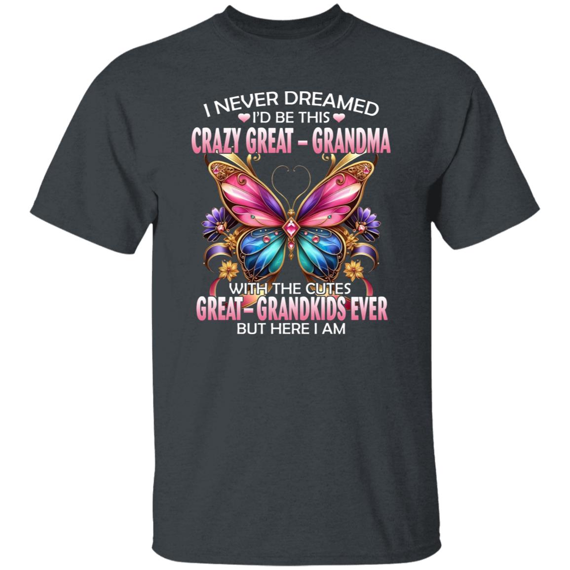 I Never Dreamed I'd Be This Crazy Great Grandma With The Cutest Great Grandkids Ever Shirt, Hoodie... Perfect gift idea for Birthday, Party, Vacation or Any Occasion, Holidays, Halloween, Christmas…This product is hand made and made on-demand. A soft tee made to go with everything in your closet.