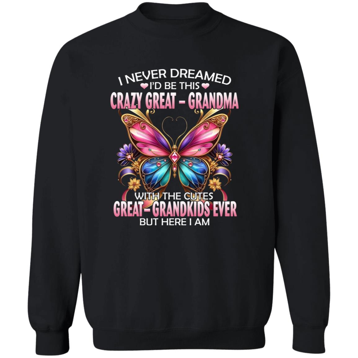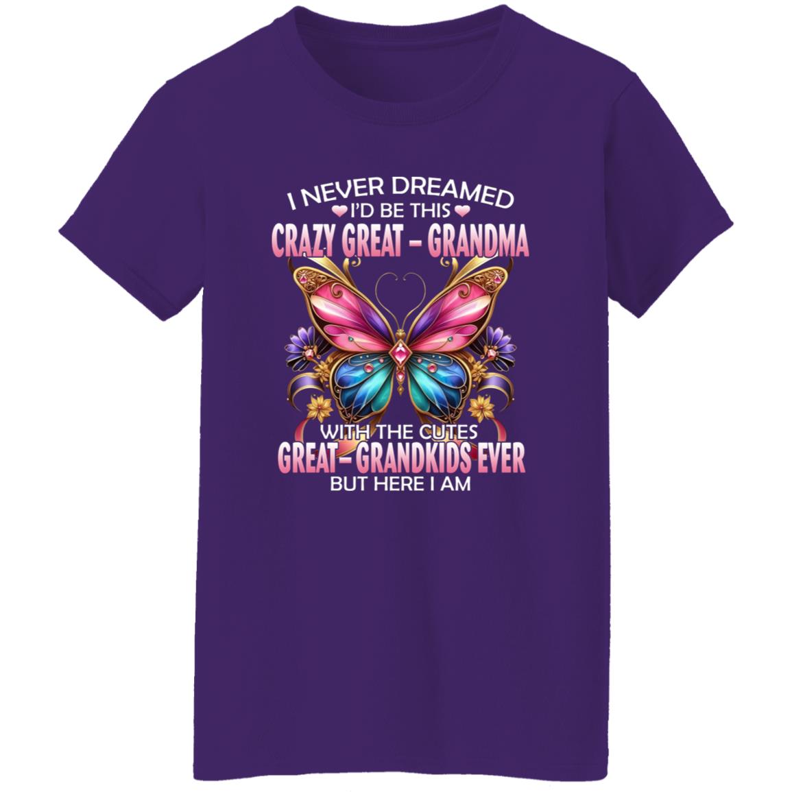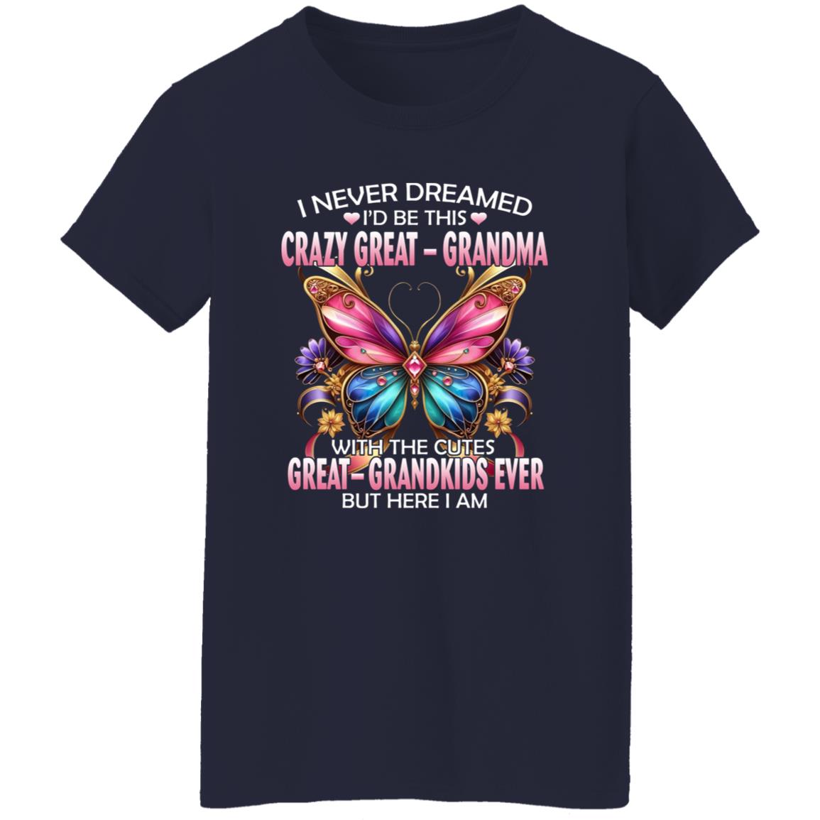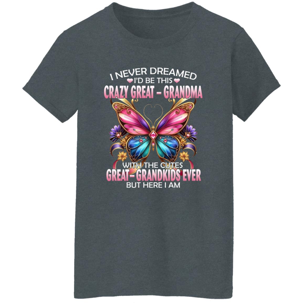 I Never Dreamed I'd Be This Crazy Great Grandma With The Cutest Great Grandkids Ever Shirt, Hoodie... Perfect gift idea for Birthday, Party, Vacation or Any Occasion, Holidays, Halloween, Christmas…This product is hand made and made on-demand. A soft tee made to go with everything in your closet.