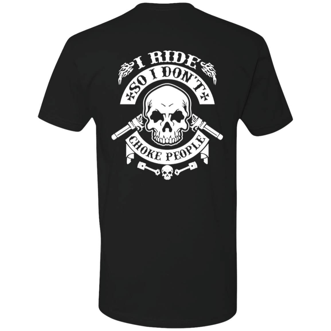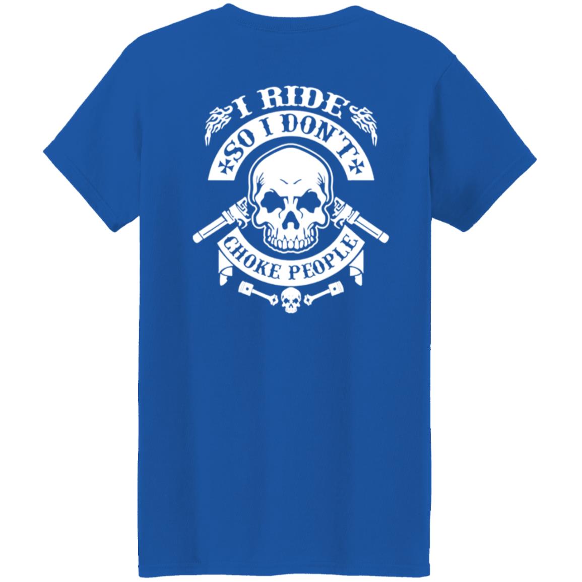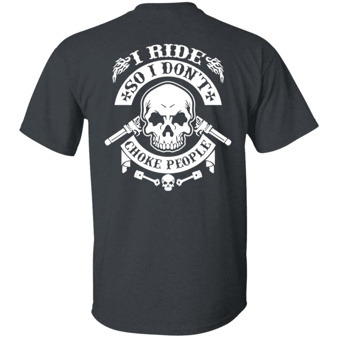 I Ride So I Don't Choke People Shirt Print On Back - Biker T-Shirt, Hoodie... Perfect gift idea for Birthday, Party, Vacation or Any Occasion, Holidays, Halloween, Christmas…This product is hand made and made on-demand. A soft tee made to go with everything in your closet.