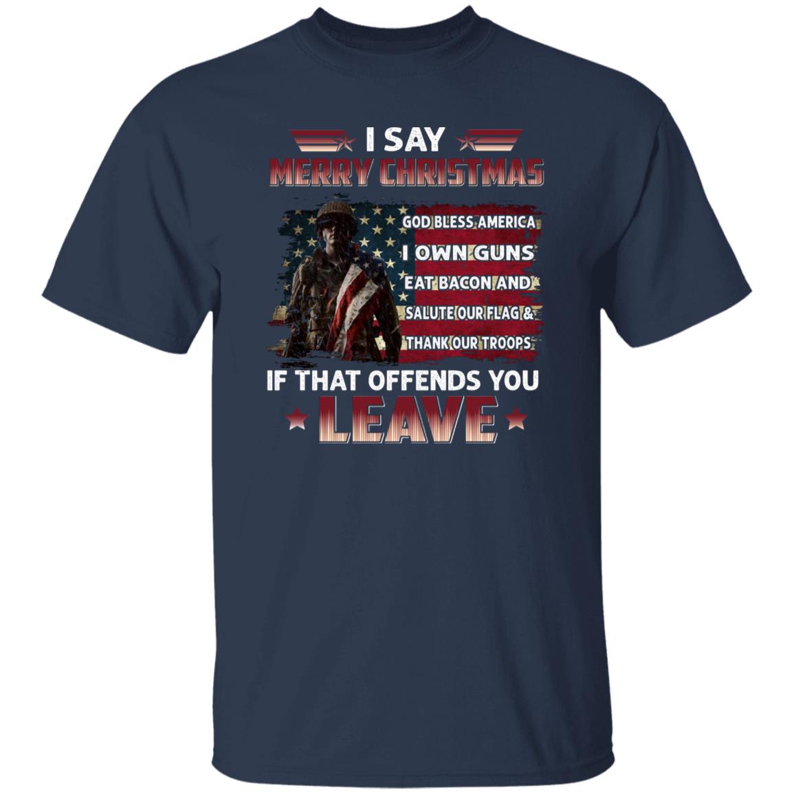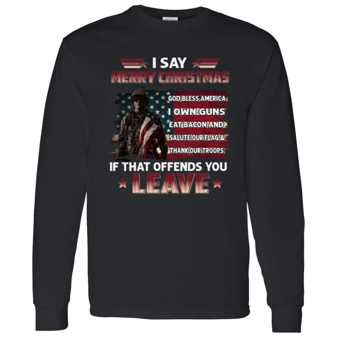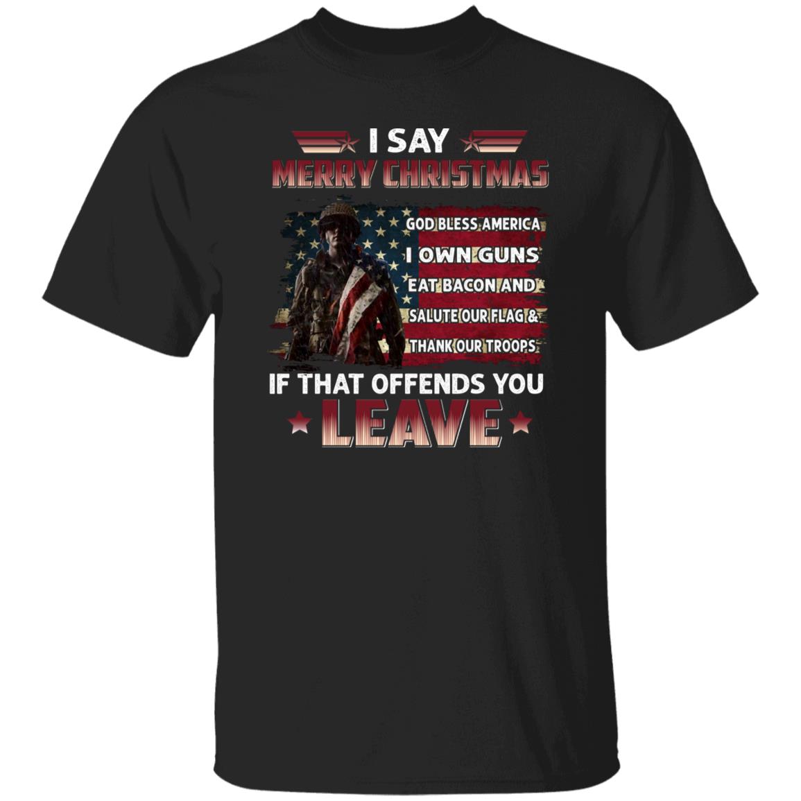 I Say Merry Christmas God Bless America I Salute Our Flag Thank Our Troops Shirt Veteran Gift