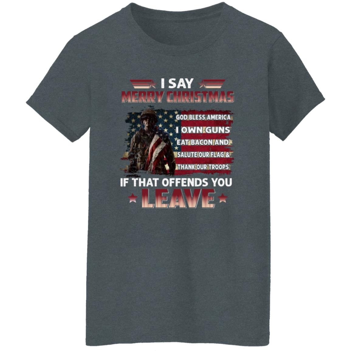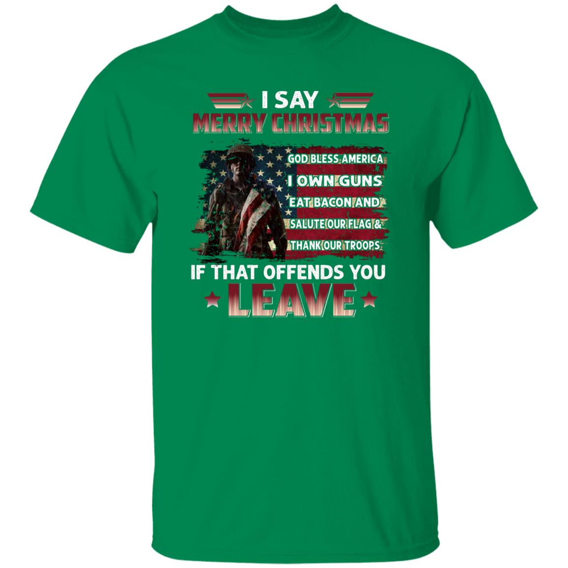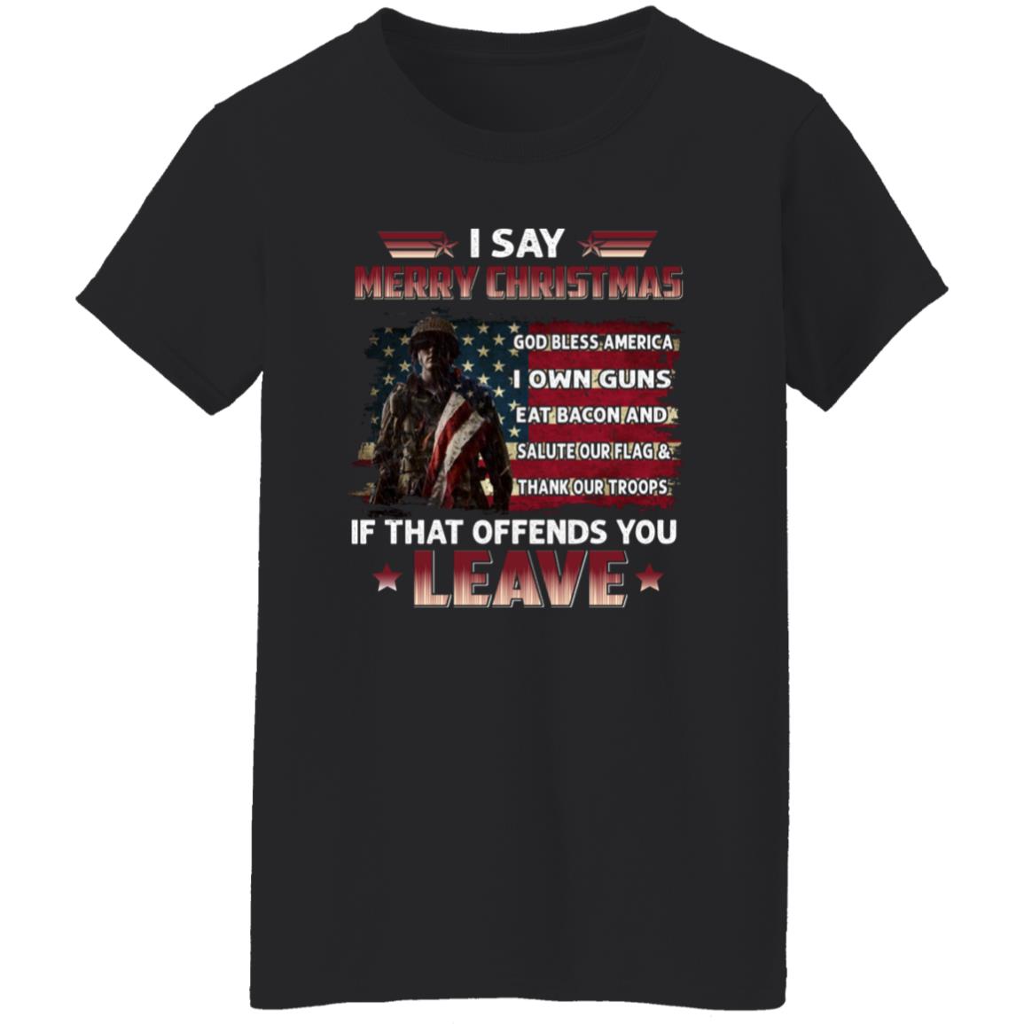 I Say Merry Christmas God Bless America I Salute Our Flag Thank Our Troops Shirt Veteran Gift