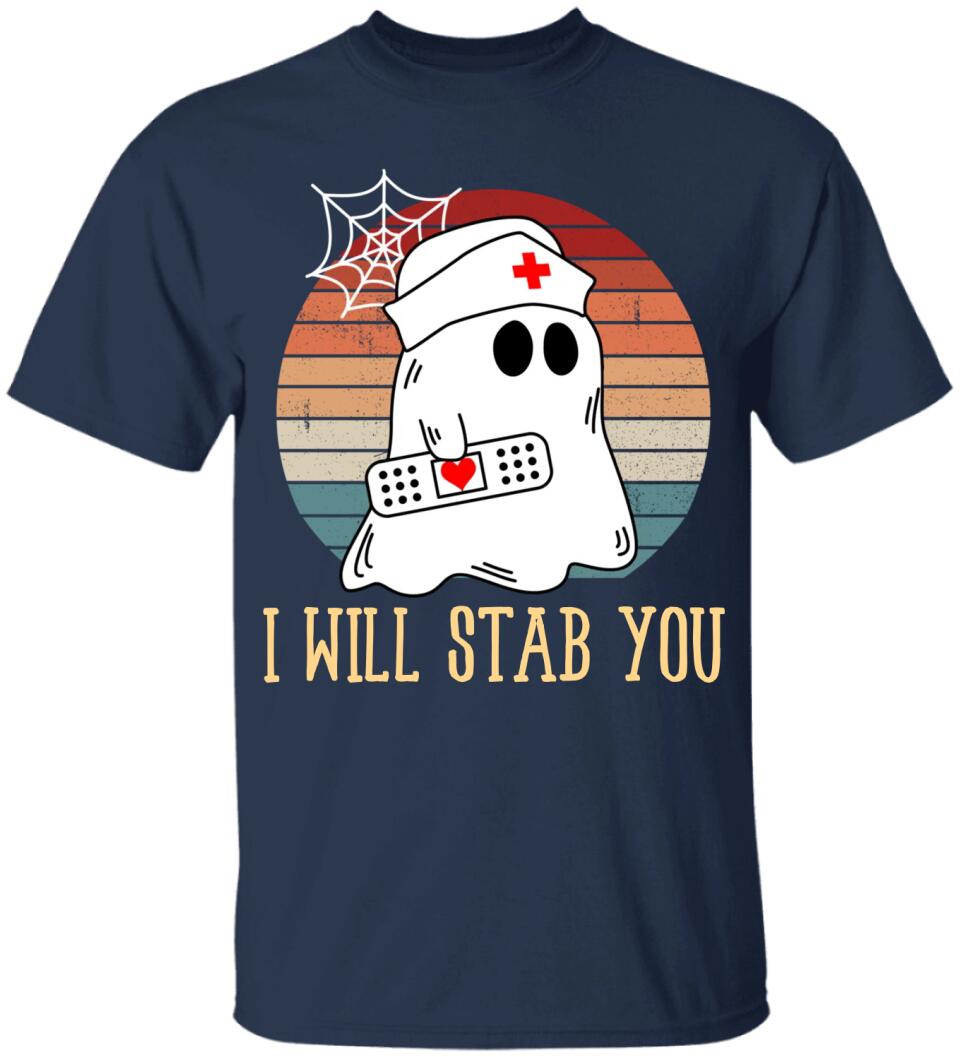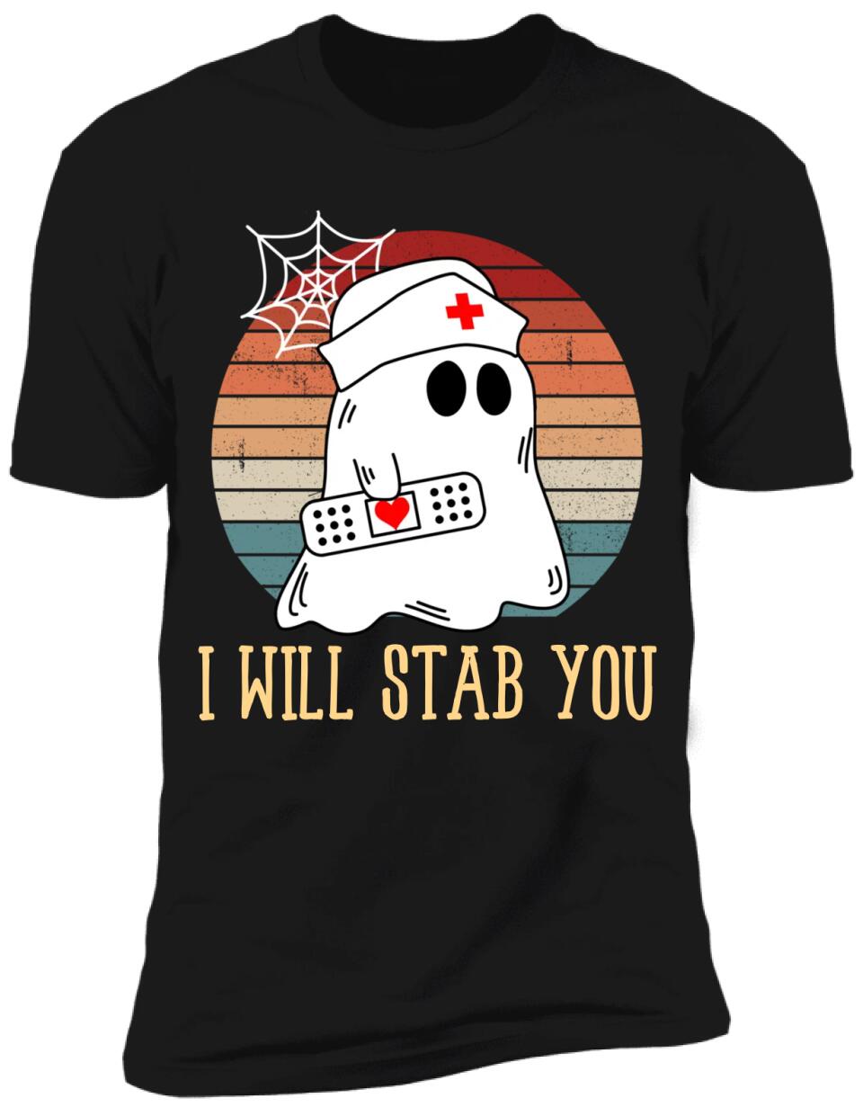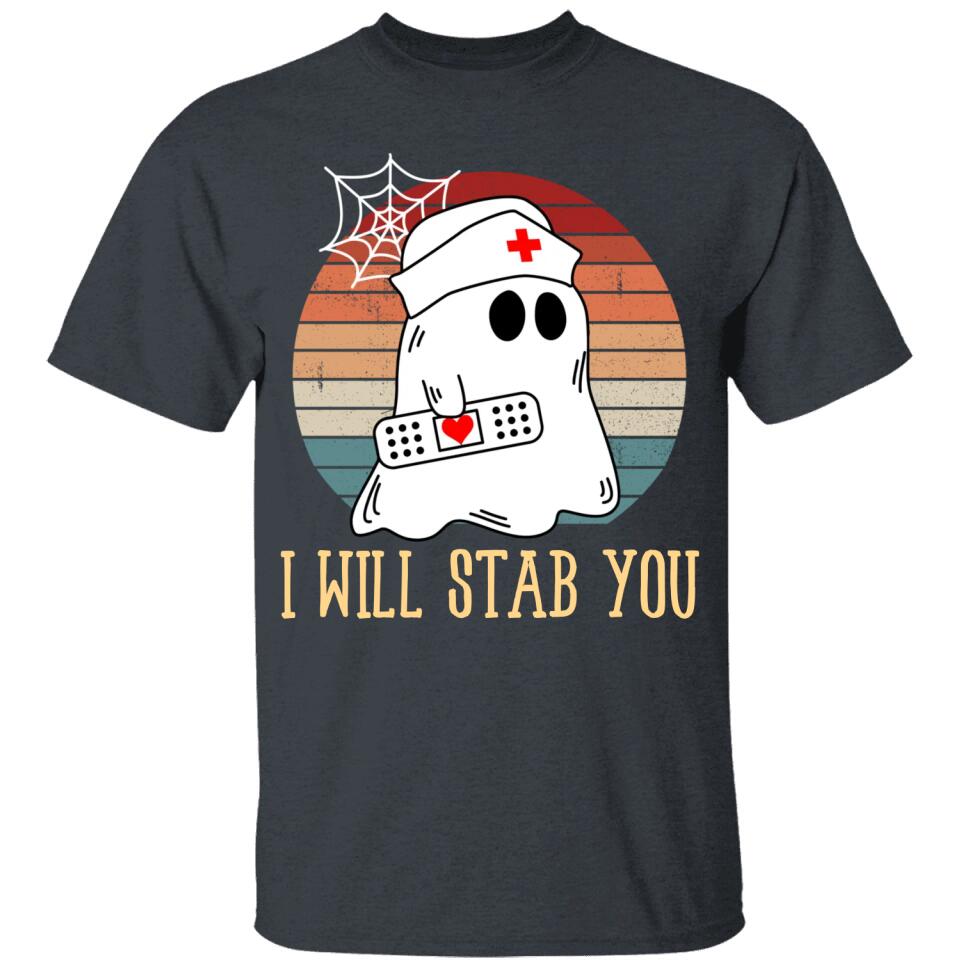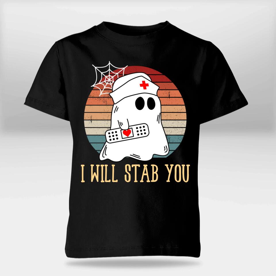 I Will Stab You Ghost Nurse Retro Funny Halloween For Nurses Shirt. Perfect gift idea for Birthday, Party, Vacation or Any Occasion, Holidays, Halloween, Christmas…Designed, printed, and shipped from the United States.
