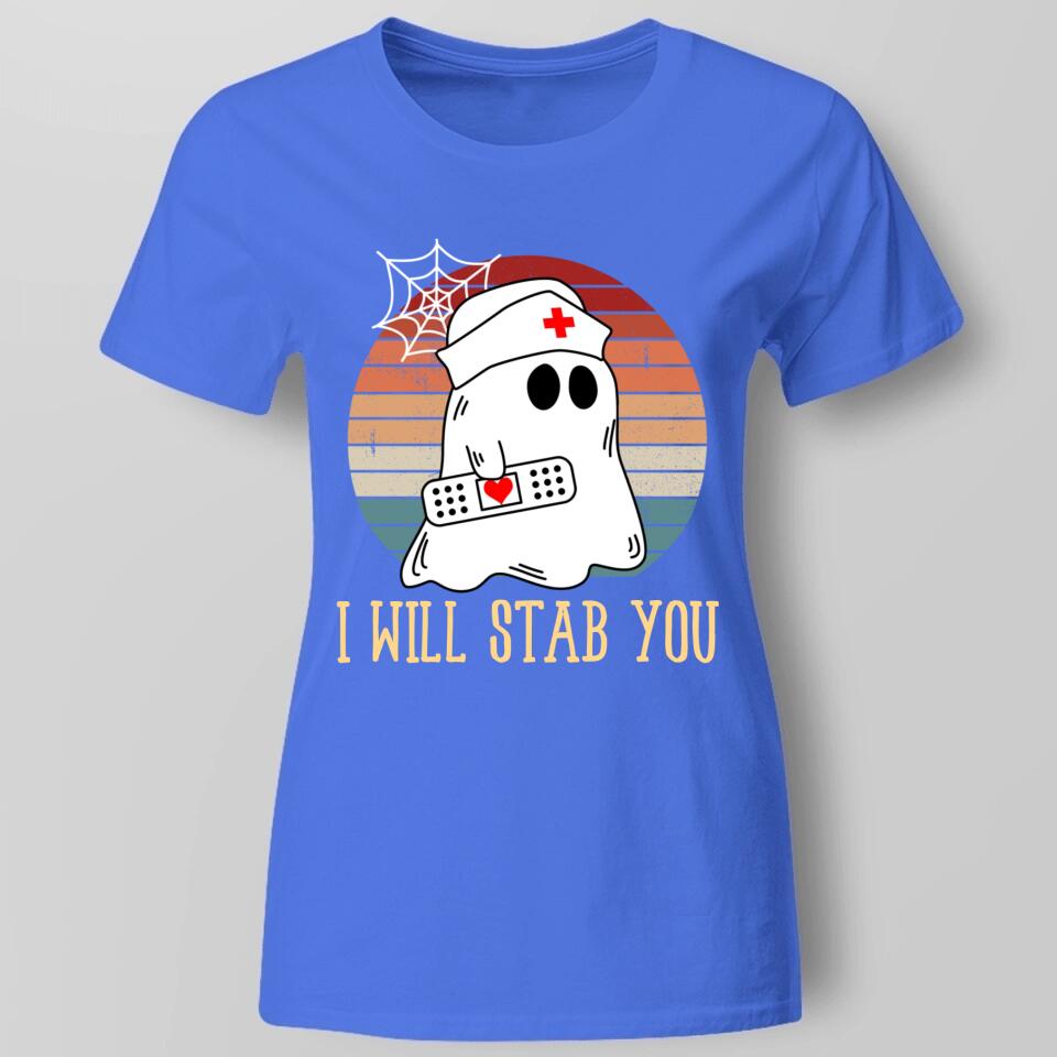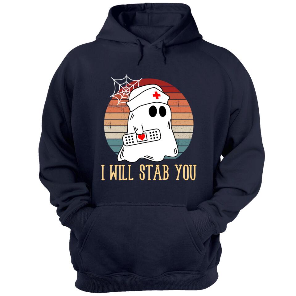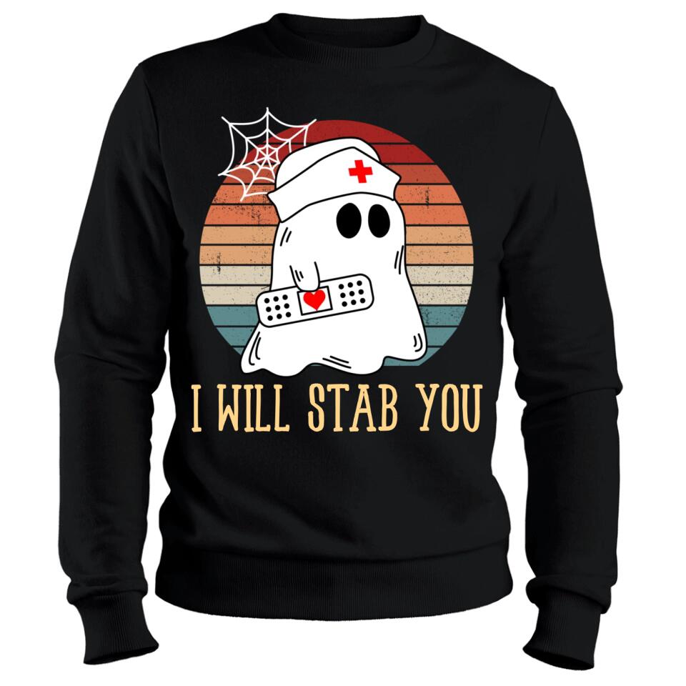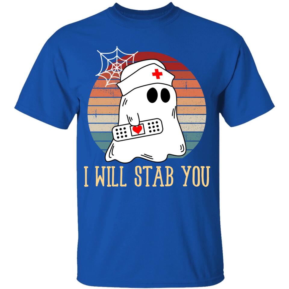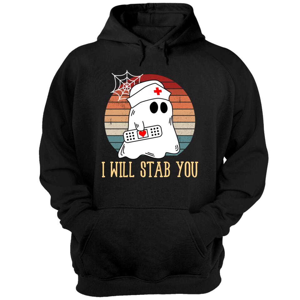 I Will Stab You Ghost Nurse Retro Funny Halloween For Nurses Shirt. Perfect gift idea for Birthday, Party, Vacation or Any Occasion, Holidays, Halloween, Christmas…Designed, printed, and shipped from the United States.