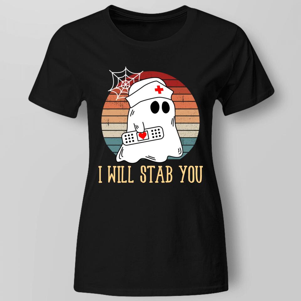 I Will Stab You Ghost Nurse Retro Funny Halloween For Nurses Shirt