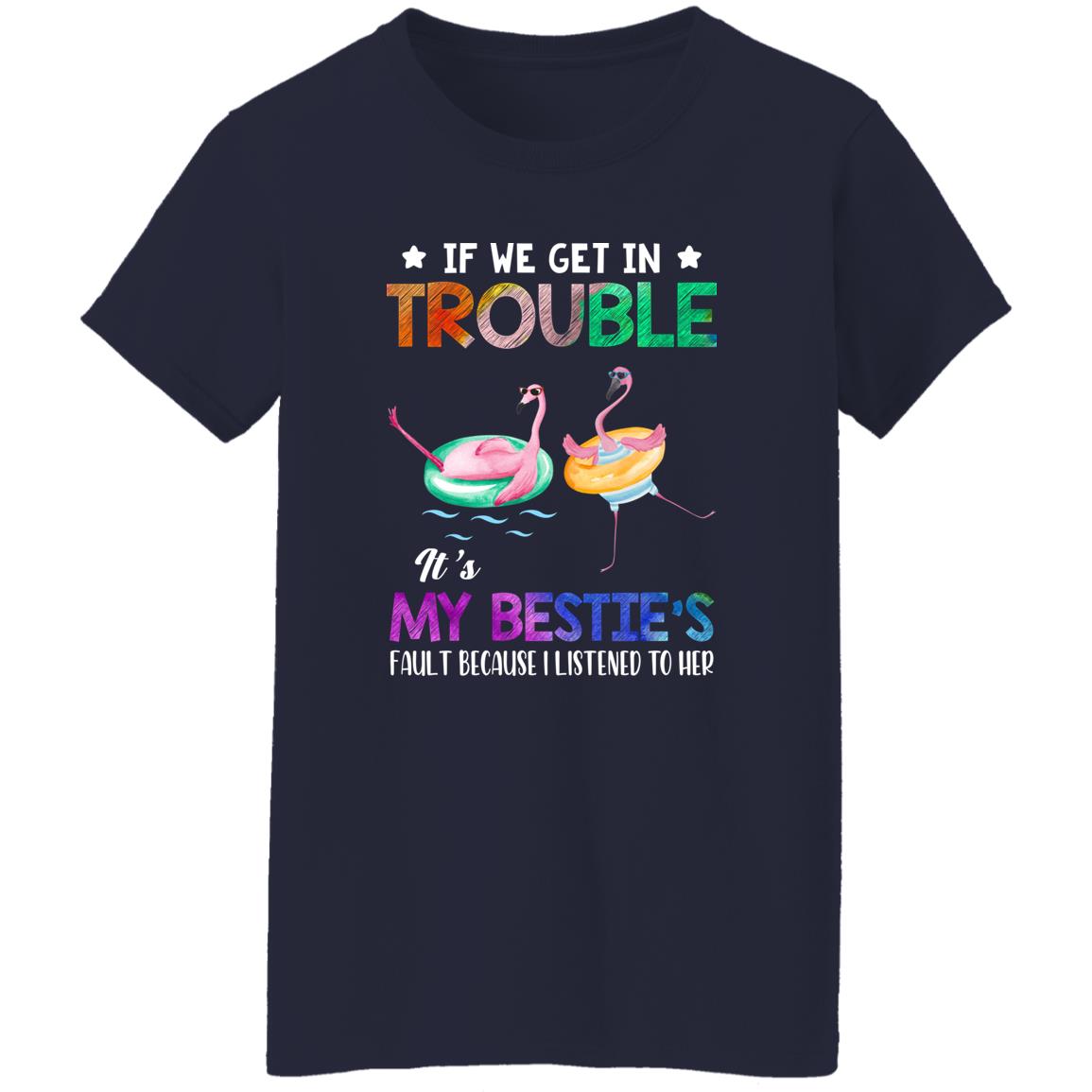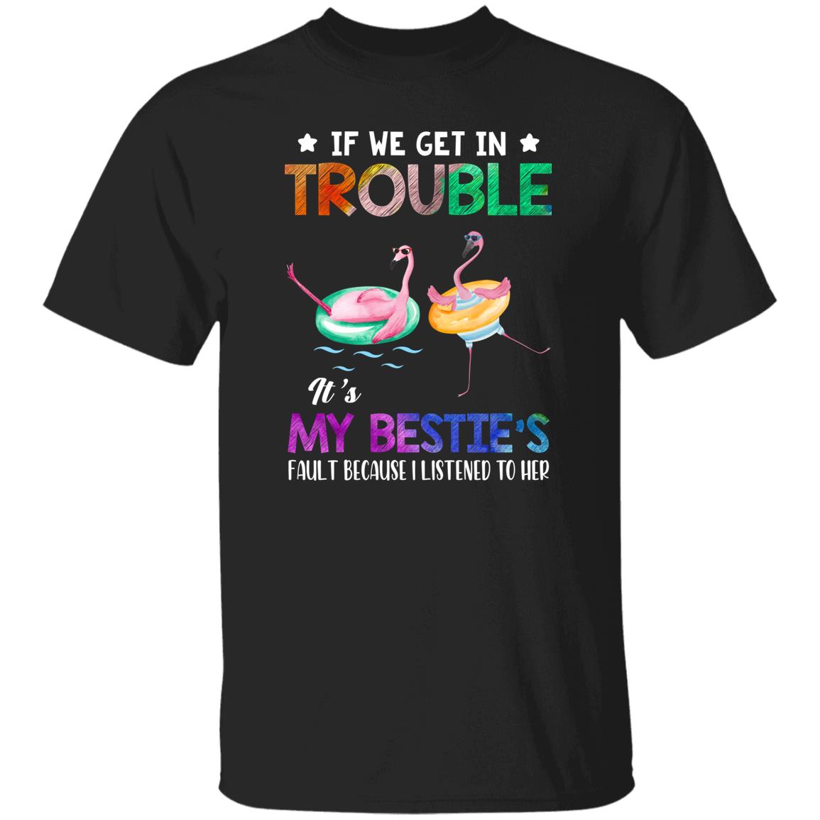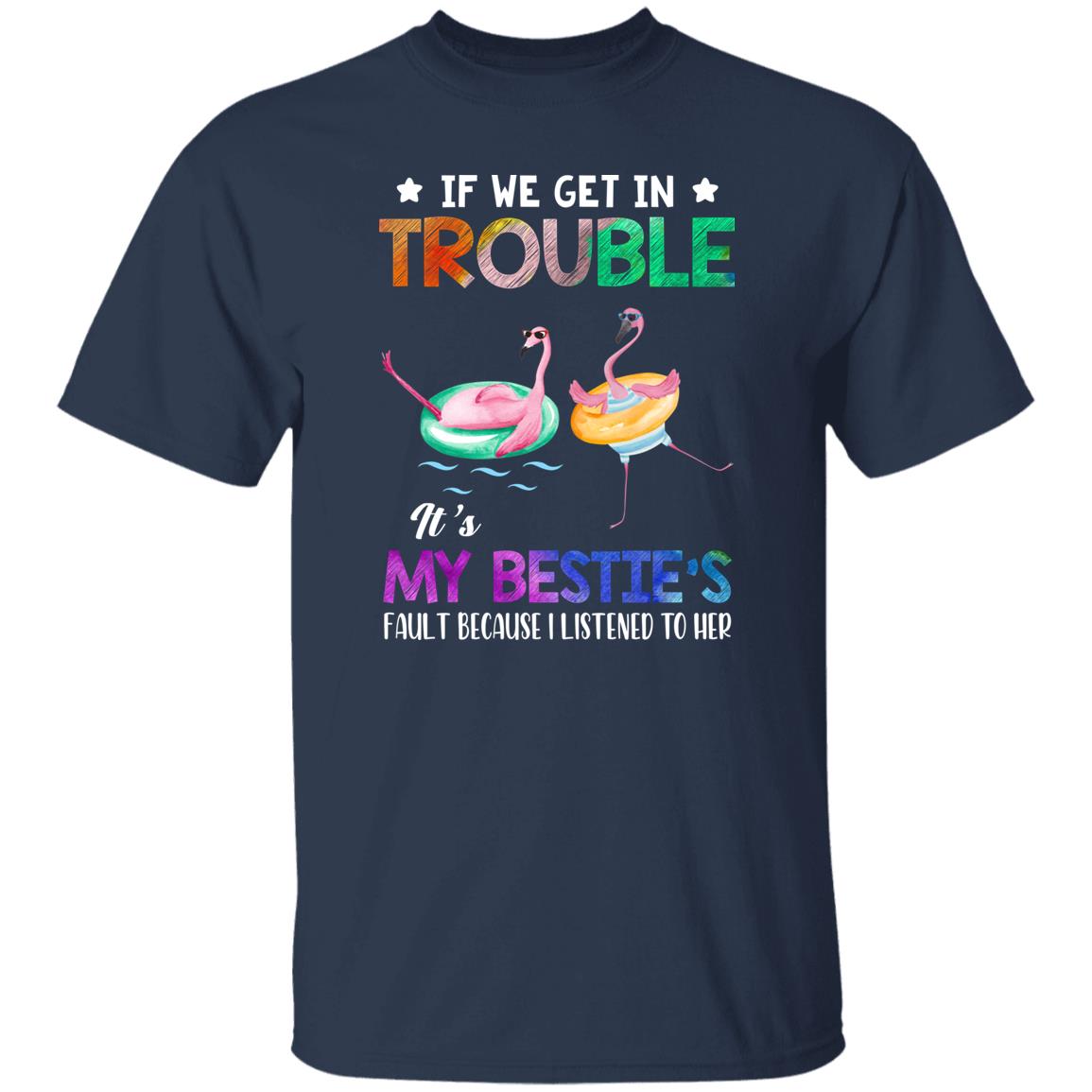 If We Get In Trouble It's My Bestie's Fault Flamingo Shirt. Perfect gift idea for Birthday, Party, Vacation or Any Occasion, Holidays, Halloween, Christmas…Designed, printed, and shipped from the United States.