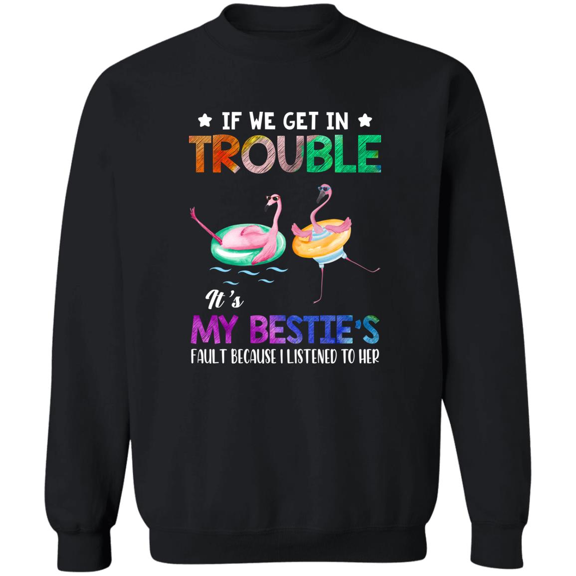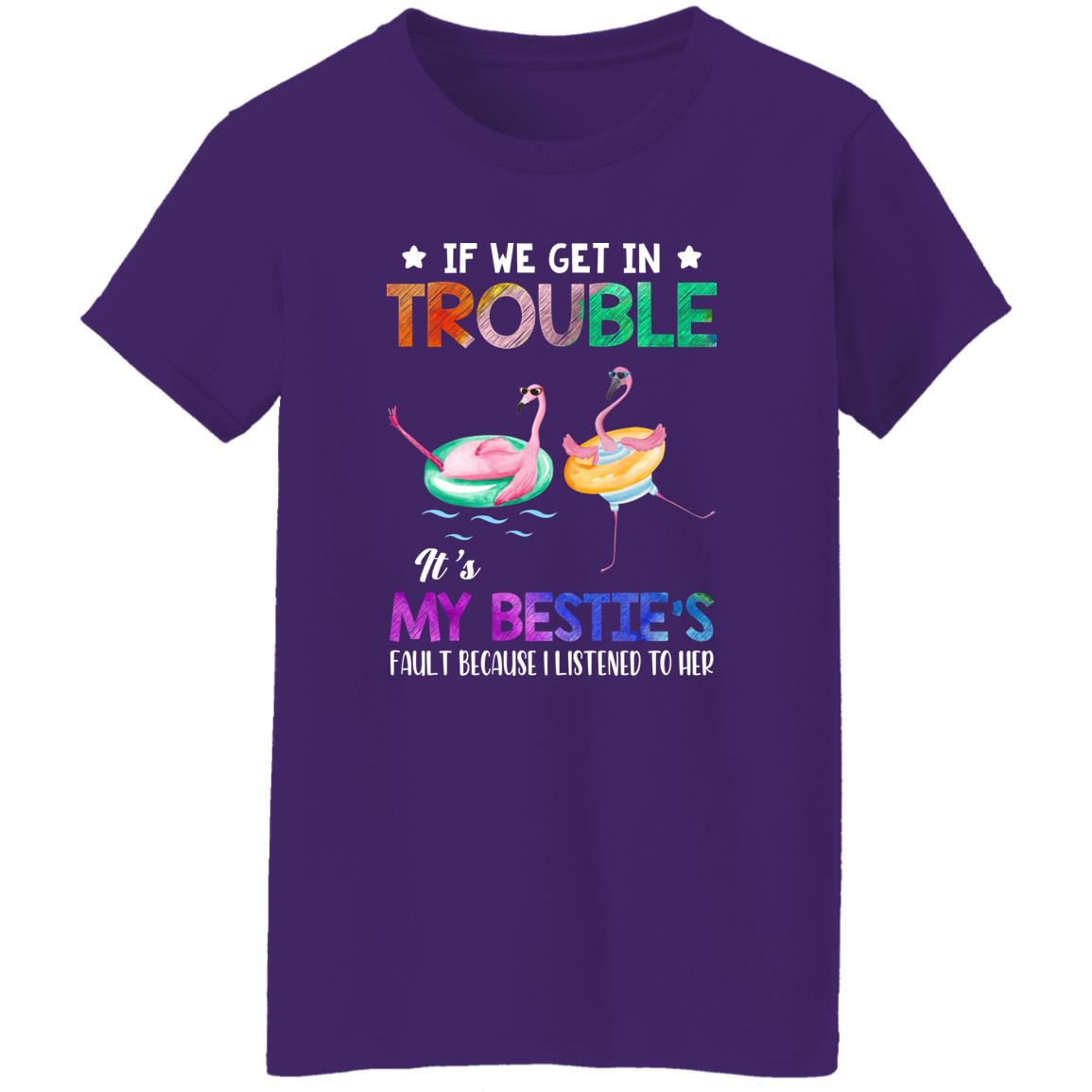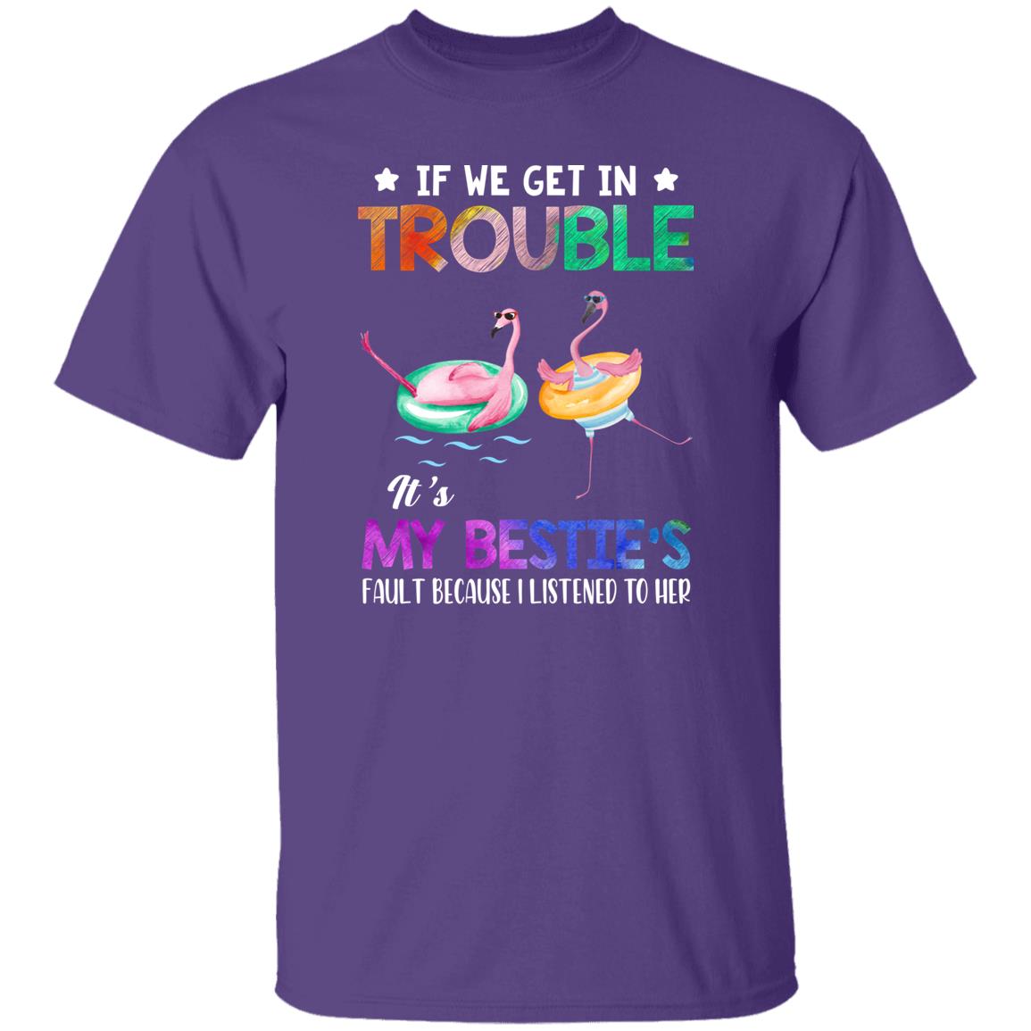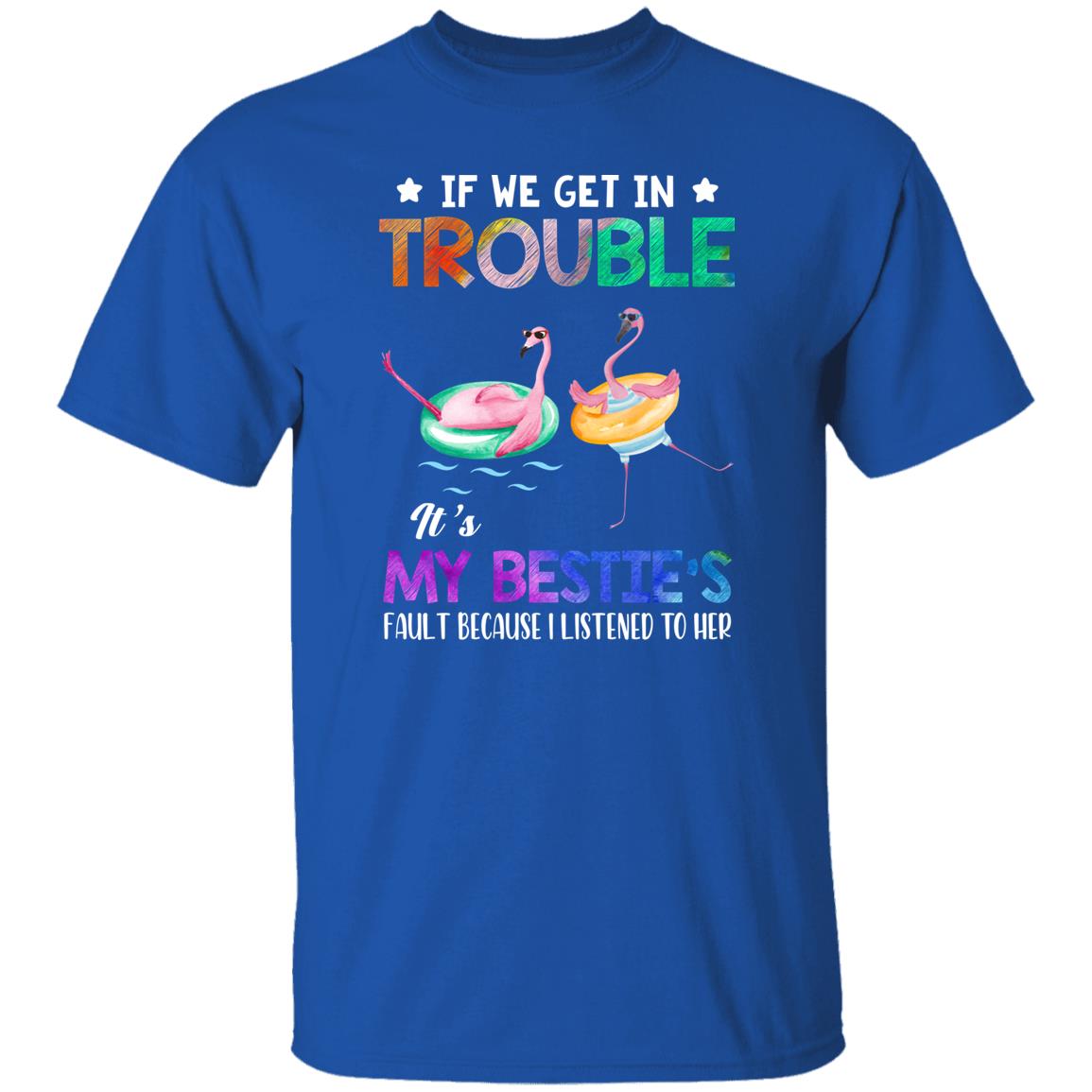 If We Get In Trouble It's My Bestie's Fault Flamingo Shirt. Perfect gift idea for Birthday, Party, Vacation or Any Occasion, Holidays, Halloween, Christmas…Designed, printed, and shipped from the United States.