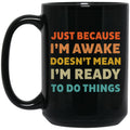 Just Because I'm Awake Doesn't Mean I'm Ready To Do Things Gift Mug. Perfect gift idea for Birthday, Party, Vacation or Any Occasion, Holidays, Halloween, Christmas…