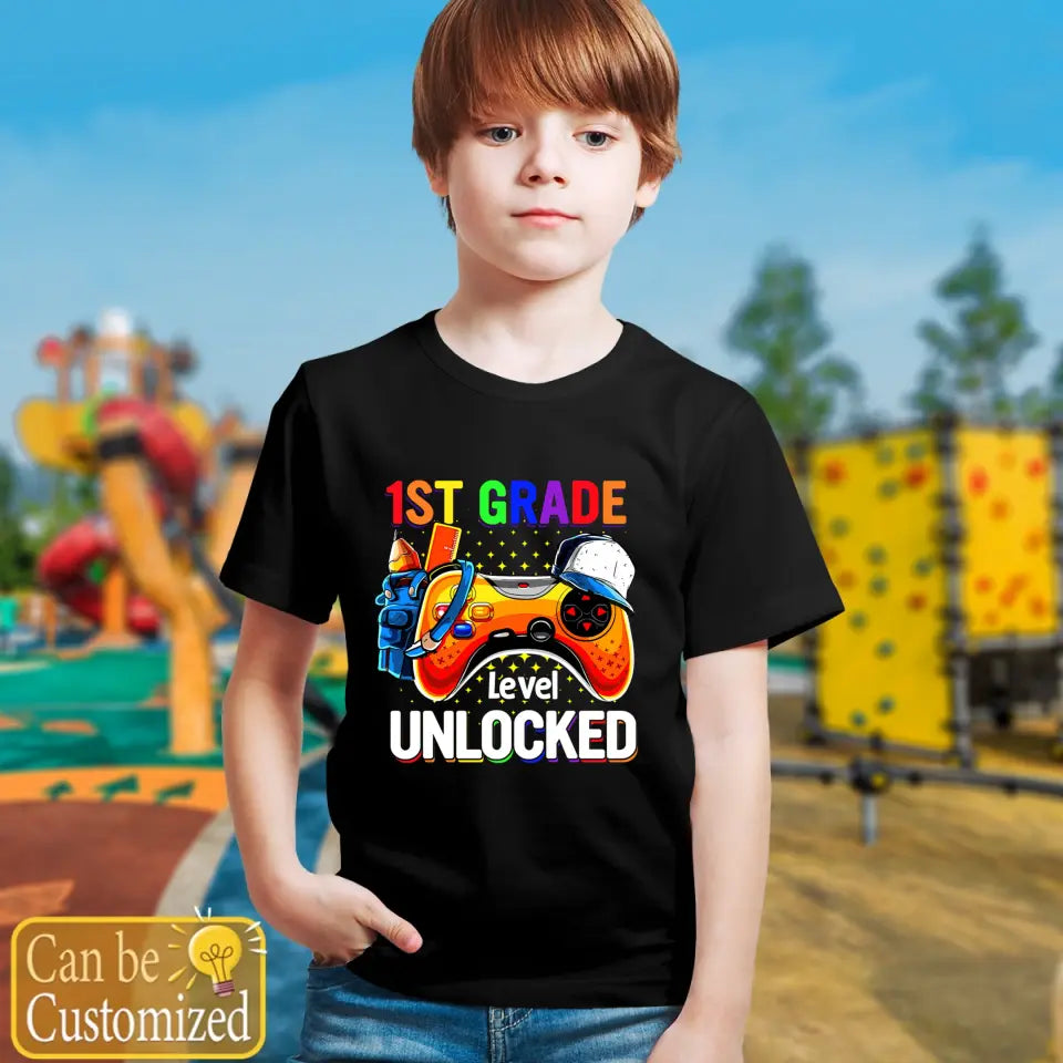 Kindergarten Level Unlocked Personalized T-Shirt - Gift For Son, Daughter - Back To School Shirt