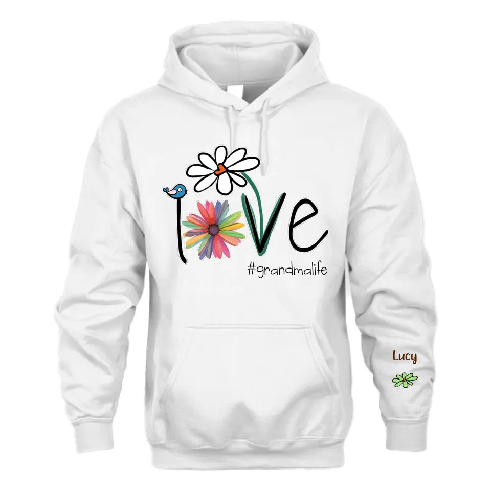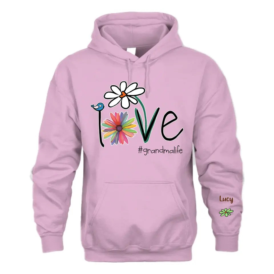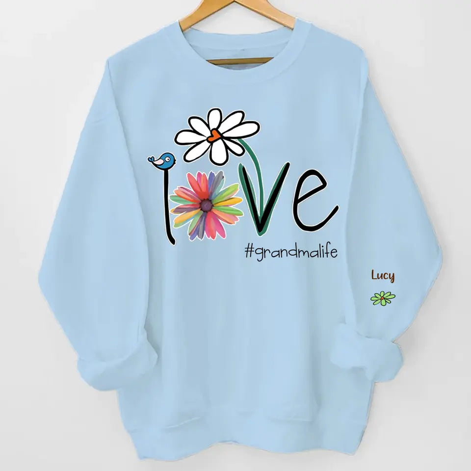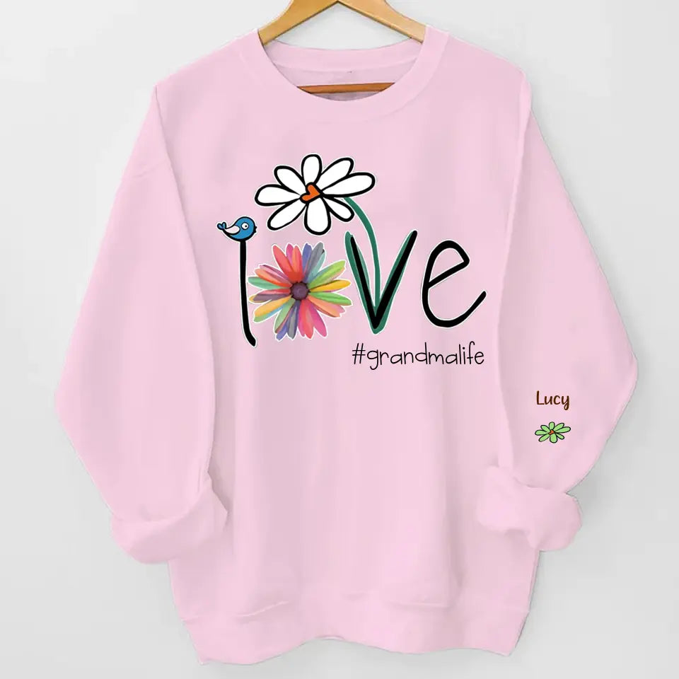 Love Grandma Life Flower Personalized Sweatshirt with Custom Design on Sleeve, GIft For Mom, Grandma